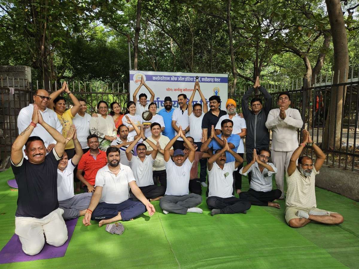 रायपुर। देश के सबसे बड़े व्यापारिक संगठन कन्फेडरेशन ऑफ ऑल इंडिया ट्रेडर्स (कैट) के राष्ट्रीय वाइस चेयरमेन अमर पारवानी, प्रदेश एक्सक्यूटिव चेयरमेन जितेन्द्र दोशी, प्रदेश अध्यक्ष परमानंद जैन, प्रदेश महामंत्री सुरिंदर सिंह एवं प्रदेश कोषाध्यक्ष अजय अग्रवाल, प्रदेश कैट महिला इकाई अध्यक्ष मधु अरोरा, प्रदेश कैट महिला इकाई महामंत्री पिंकी अग्रवाल एवं प्रदेश कैट महिला इकाई कोषाध्यक्ष प्रेरणा भटट् ने बताया कि आज अंर्तराष्ट्रीय योग दिवस पर कैट कार्यालय में योग शिविर का अयोजन हुआ। सुश्री पारूल अवस्थी सर्टीफाइड योग प्रशिक्षक बोधि (स्कूल ऑफ योग) हैदराबाद के द्वारा योग प्रशिक्षण दिया गया है।