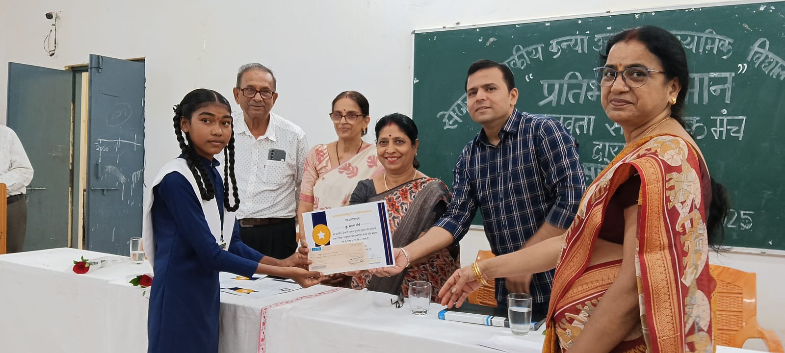मानवता सामाजिक मंच जगदलपुर की अध्यक्ष रश्मि शुक्ला, अवधेश शुक्ला, साकेत दुबे और सदस्यों ने विद्यालय पहुंचकर छात्राओं का उत्साहवर्धन करते हुए उन्हें प्रोत्साहन राशि और प्रमाण पत्र प्रदान किए। कार्यक्रम की विधिवत शुरुआत मां सरस्वती की प्रतिमा पर माल्यार्पण के साथ की गई। इस अवसर पर बेंगलुरु से गूगल के इंजीनियर साकेत दुबे उपस्थित थे। उन्होंने कहा छात्र-छात्राएं अपने स्कूल की पढ़ाई के आधार पर ही आगे बढ़ते हैं, अनुशासन और मार्गदर्शन उन्हें विद्यालय में ही मिलता है। निरंतर परिश्रम करते हुए वे आगे बढ़ें।अवधेश शुक्ला ने कहा कि आजकल छात्र-छात्राओं में संस्कारों का अभाव है। अनुशासन के साथ-साथ वह अपने संस्कारों को न भूलें, शिक्षकों से उचित मार्गदर्शन प्राप्त करें और आगे बढ़ें।अध्यक्ष रश्मि शुक्ला ने कहा कि छात्र-छात्राओं और लोगों को प्लास्टिक का उपयोग नहीं करना चाहिए। साथ ही पौधारोपण कर उनके देखभाल करें जिससे भविष्य में पर्यावरण संबंधी समस्याओं से हम निजात पा सकें। विद्यालय की प्राचार्य सुधा परमार ने आमंत्रित सभी अतिथियों का धन्यवाद ज्ञापित करते हुए कहा कि ऐसे प्रयासों से छात्राएं प्रोत्साहित होती हैं और उन्हें जो राशि प्राप्त होती है, उससे उन्हें आगे बढ़ने का पथ प्रशस्त होता है। छात्रों में सपना मौर्य 87 प्रतिशत, दीक्षा बघेल 86 प्रतिशत और नेहा यादव 85 प्रतिशत को 10-10 हजार रुपए के चेक और प्रमाण पत्र प्रदान किए गए। प्रोत्साहन राशि प्राप्त कर तीनों छात्राओं ने मानवता सामाजिक मंच का धन्यवाद देते हुए आगे की कक्षाओं में और उच्च अंक प्राप्त करने का आश्वासन दिया। कार्यक्रम का संचालन संजीव शील ने और आभार प्रदर्शन जीवनलाल शर्मा ने किया। कार्यक्रम में श्रीमती प्रहराज, सुभद्रा राव सहित समस्त स्टाफ एवं छात्र छात्राएं उपस्थित रहे।