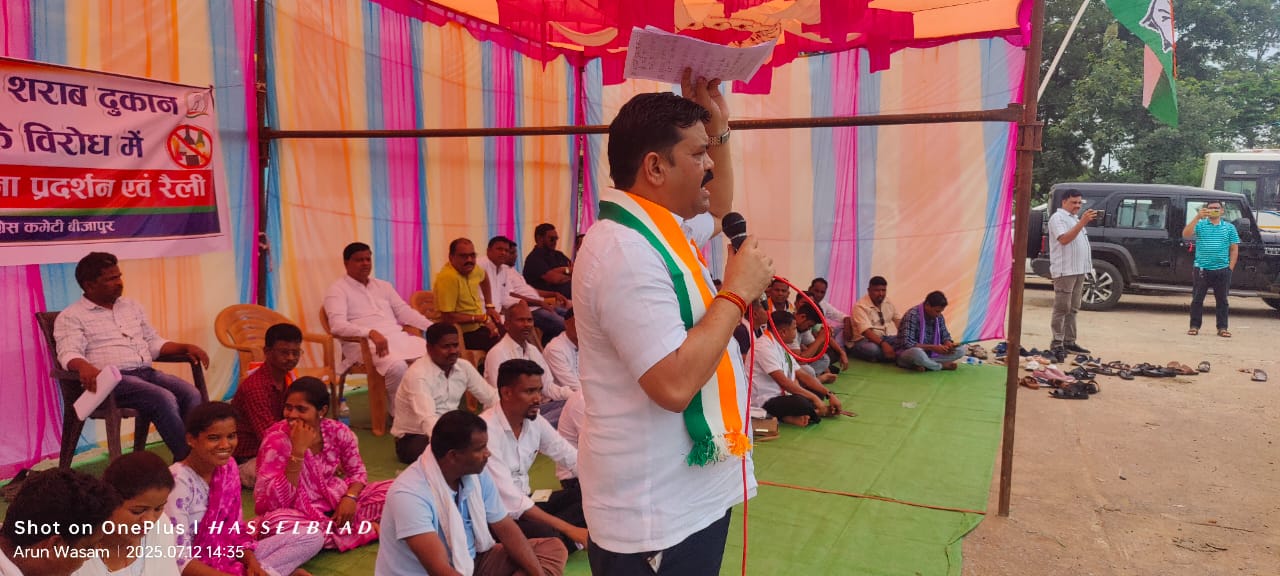 रैली को संबोधित करते हुए बीजापुर से कांग्रेस विधायक विक्रम मंडावी ने साय सरकार पर हमला बोला। उन्होंने कहा कि भाजपा सरकार बस्तर के आदिवासियों को नशे में धकेलने रही है। इस सरकार को आदिवासियों के उत्थान और आदिवासी क्षेत्रों के विकास से कोई सरोकार नहीं है। विधायक विक्रम मंडावी ने बीजापुर जिले के आवापल्ली में नई देशी शराब दुकान खोले जाने को आदिवासी युवाओं के भविष्य पर कुठाराघात बताया और सरकार पर आदिवासी क्षेत्रों को नशे की भेंट चढ़ाने का आरोप लगाया। विधायक मंडावी ने कहा कि भाजपा सरकार एक तरफ पूरे प्रदेश में 10423 स्कूल बंद कर चुकी है बस्तर में भी लगभग 1200 स्कूलों पर ताले लगाकर आदिवासी बच्चों का भविष्य अंधेरे में धकेल चुकी है, वहीं दूसरी तरफ भाजपा सरकार पूरे प्रदेश में नई शराब दुकानें खोल रही है इस वर्ष भाजपा सरकार ने 67 शराब दुकानें खोली हैं। आवापल्ली जैसे सुदूर संवेदनशील आदिवासी गांवों में देशी विदेशी शराब की दुकानें खोलकर युवाओं को नशे के दलदल में फंसा रही है। श्री मंडावी ने सरकार की नीतियों को आदिवासी विरोधी करार देते हुए कहा कि भाजपा सरकार की इन नीतियों से आदिवासी क्षेत्र के युवा शिक्षा और रोजगार से वंचित हो रहे हैं। उन्होंने कहा कि आवापल्ली जैसे अंदरूनी गांव में शराब दुकान खोलकर भाजपा सरकार ने यह साबित कर दिया कि भाजपा आदिवासियों के लिए शिक्षा, स्वास्थ्य और रोजगार की सुविधा उपलब्ध कराने से ज्यादा शराब की दुकानें खोलने को महत्व देती है। वर्तमान समय में उसूर ब्लॉक अति नक्सल प्रभावित क्षेत्र है, जहां पर शिक्षा स्वास्थ्य, मूलभूत, सुविधाओं सहित विकास की जरूरत है। वहां पर विकास पहली प्राथमिकता होनी चाहिए, पर भाजपा सरकार इसे महत्व न देते हुए देशी विदेशी शराब दुकानों को क्यों प्राथमिकता दे रही है। श्री मंडावी ने कहा कि शराब दुकान खुलने से नक्सल प्रभावित क्षेत्र उसूर के युवाओं, ग्रामीणों पर गलत प्रभाव पड़ेगा। सरकार को यह फैसला तुरंत वापस लेना चाहिए। इस दौरान जिला कांग्रेस अध्यक्ष लालू राठौर, जिला पंचायत सदस्य नीना रावतिया उद्दे, पूर्व जिला पंचायत उपाध्यक्ष कमलेश कारम, कृषक कल्याण परिषद के पूर्व सदस्य और पूर्व जिला पंचायत सदस्य बसंत राव ताटी, जनपद अध्यक्ष सोनू पोटाम, जिला महामंत्री सुखदेव नाग, पूर्व नगर पालिका अध्यक्ष बेनहूर रावतिया, जिला कांग्रेस कमेटी के मीडिया प्रभारी राजेश जैन, उपाध्यक्ष पुरुषोत्तम सल्लूर, नगर कांग्रेस अध्यक्ष संतोष गुप्ता, श्यामू गुप्ता, जनपद सदस्य बोधि ताती, पूर्व पार्षद कविता यादव, मनोज अवलम, रत्ना सोढ़ी, अनिता तेलाम सहित बड़ी संख्या में ग्रामीण एवं कांग्रेस कार्यकर्ता उपस्थित थे।