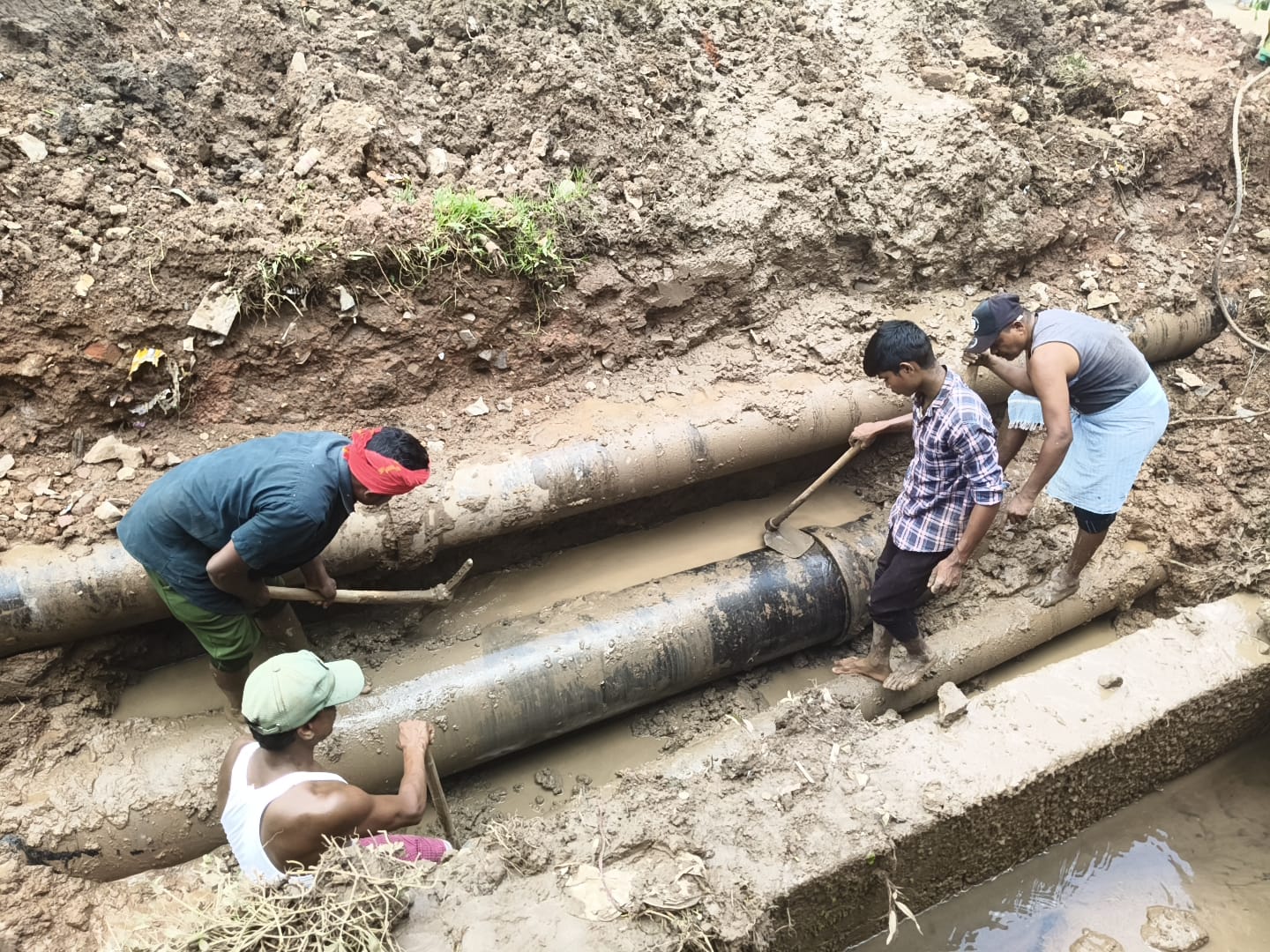 जगदलपुर। शहर में जल आवर्धन योजना के अंतर्गत प्रमुख पाइपलाइन क्षतिग्रस्त हो जाने के कारण बीते लम्बे समय से कुछ वार्डों में जल आपूर्ति प्रभावित हो रही है। इस स्थिति को देखते हुए नगर निगम महापौर संजय पाण्डे ने आज नगर निगम के जनप्रतिनिधियों व आयुक्त के साथ मौके पर पहुँचकर स्थिति का निरीक्षण किया।