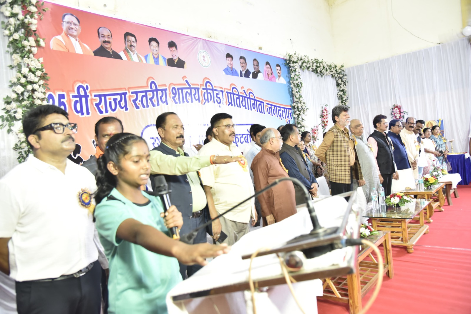 इस अवसर पर मुख्य अतिथि विधायक किरण देव ने स्पर्धा के विधिवत उदघाटन की घोषणा की। वहीं राष्ट्रीय खिलाड़ी अमृता पोड़ियामी ने खिलाड़ियों को खेल भावना के साथ स्पर्धा में अपने प्रतिभा का प्रदर्शन करने की शपथ दिलाई। आरंभ में आयोजकों सहित खिलाड़ियों के द्वारा अतिथियों को बैज लगााकर आत्मीय स्वागत किया गया। इस मौके पर जिला पंचायत उपाध्यक्ष बलदेव मंण्डावी, नगरपालिक निगम के अध्यक्ष खेमसिंह देवागंन सहित क्षेत्र के जनप्रतिनिधी, गणमान्य नागरिक और संचालक लोक शिक्षण के प्रतिनिधी अनिल मिश्रा, संयुक्त संचालक स्कूल शिक्षा राकेश पाण्डे तथा शिक्षा विभाग के अधिकारी-कर्मचारी, प्रधानचार्य और शिक्षक-शिक्षिकाएं व बड़ी संख्या में स्कूली छात्र-छात्राएं मौजूद थे। कार्यक्रम के अंत मे जिला परियोजना समन्वयक समग्र शिक्षा श्री अखिलेश मिश्र ने आभार व्यक्त किया।