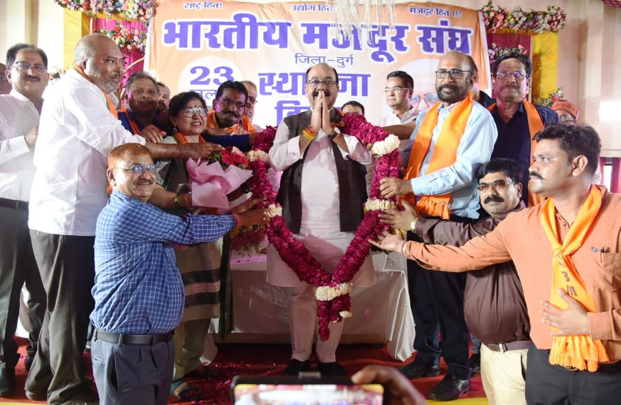 उप मुख्यमंत्री अरुण साव ने भारतीय मजदूर संघ के स्थापना दिवस कार्यक्रम को संबोधित करते हुए कहा कि आज हम सब भारतीय मजदूर संघ का 70वां स्वर्णिम स्थापना दिवस मना रहे हैं। उन्होंने संघ के पदाधिकारियों को बधाई देते हुए कहा कि मजदूर भाईयों ने विगत 70 सालों से भारतीय मजदूर संघ के साथ ही देश को रचनात्मक दिशा देने का कार्य किया है। भारतीय मजदूर संघ दुनिया का सबसे बड़ा संघ है। इसने देश को आत्मनिर्भर बनाने में सरकार और मजदूरों के मध्य सेतु का कार्य किया है। श्री साव ने कहा कि मोदी सरकार समाज के सभी वर्गों के हित में कार्य कर रही है। मुख्यमंत्री विष्णु देव साय के नेतृत्व में राज्य सरकार भी इस दिशा में काम कर रही है। श्रमिकों का कल्याण सर्वोच्च प्राथमिकता में है। उन्होंने संघ की मांग पर भवन के लिए पदाधिकारियों से जमीन की व्यवस्था करने का आग्रह किया। उन्होंने भवन के निर्माण के लिए हरसम्भव सहयोग का भरोसा दिलाया।