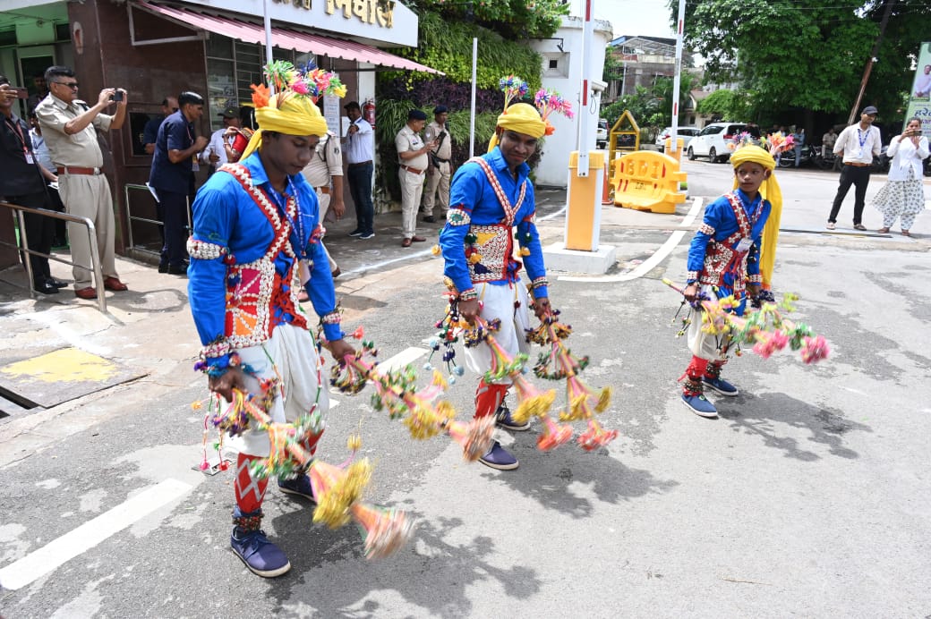 रायपुर। मुख्यमंत्री निवास में हरेली तिहार के अवसर पर पारंपरिक लोक यंत्रों की गूंज और छत्तीसगढ़ की सांस्कृतिक छटा के साथ सुंदर नाचा का आयोजन किया जा रहा है। पूरा परिसर उत्सवमय वातावरण से सराबोर है। ग्रामीण परिवेश की जीवंत छवि इस सुंदर माहौल में साकार हो गई है। कहीं सुंदर वस्त्रों में सजे राउत नाचा कर रहे कलाकारों की रंगत बिखरी है, तो कहीं आदिवासी कलाकार पारंपरिक लोक नृत्य की मोहक प्रस्तुतियाँ दे रहे हैं। छत्तीसगढ़ का अद्भुत ग्रामीण लैंडस्केप अपनी संपूर्ण सांस्कृतिक सुंदरता के साथ यहां सजीव रूप में अवतरित हो गया है। विभिन्न प्रकार की लोक धुनों में छत्तीसगढ़ी संगीत का माधुर्य अपने चरम पर है।