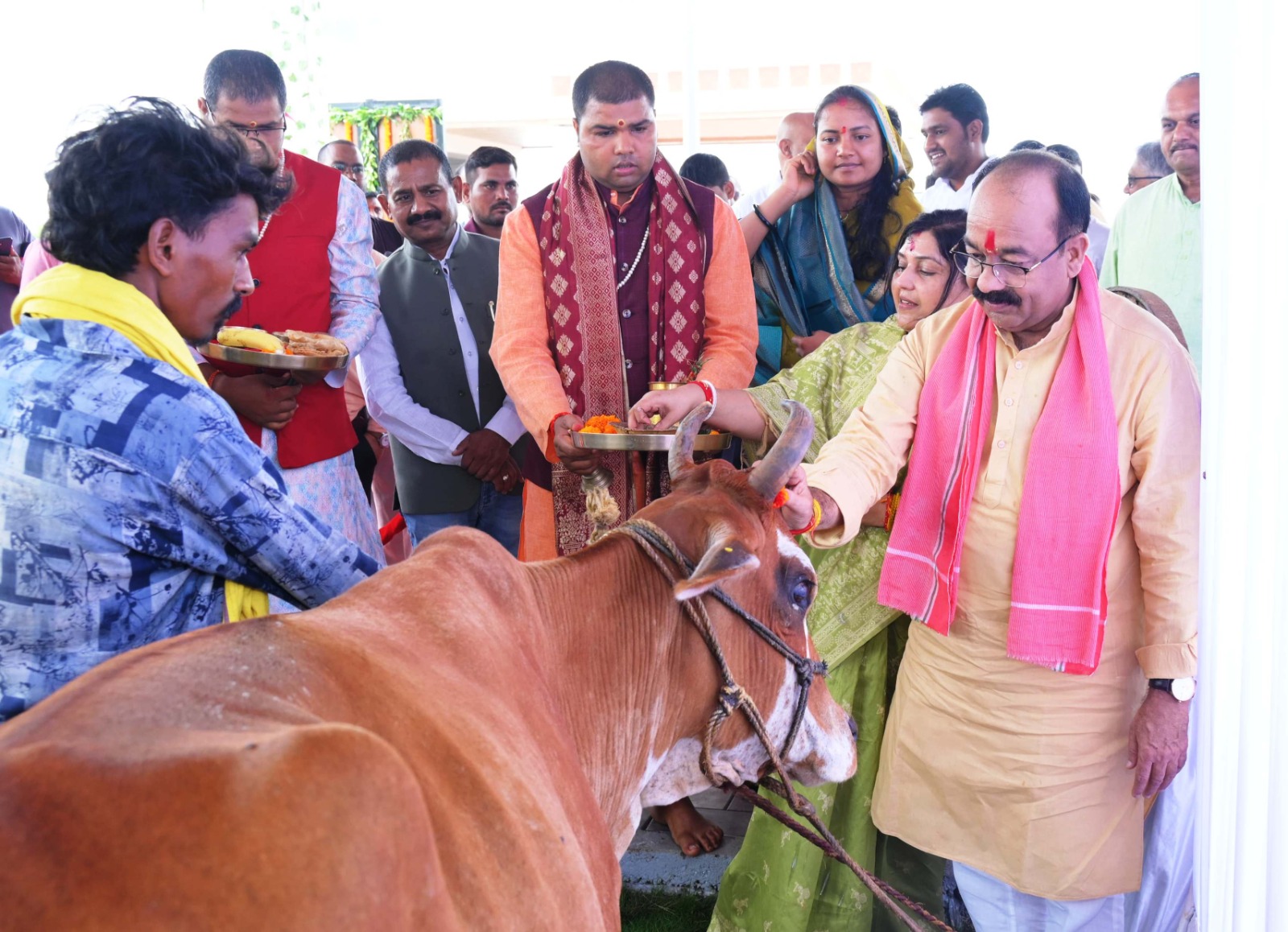 ० श्री साव ने हल और कृषि औजारों की पूजा कर गौमाता को आटे की लोंदी खिलाई, गेड़ी का भी लिया आनंद