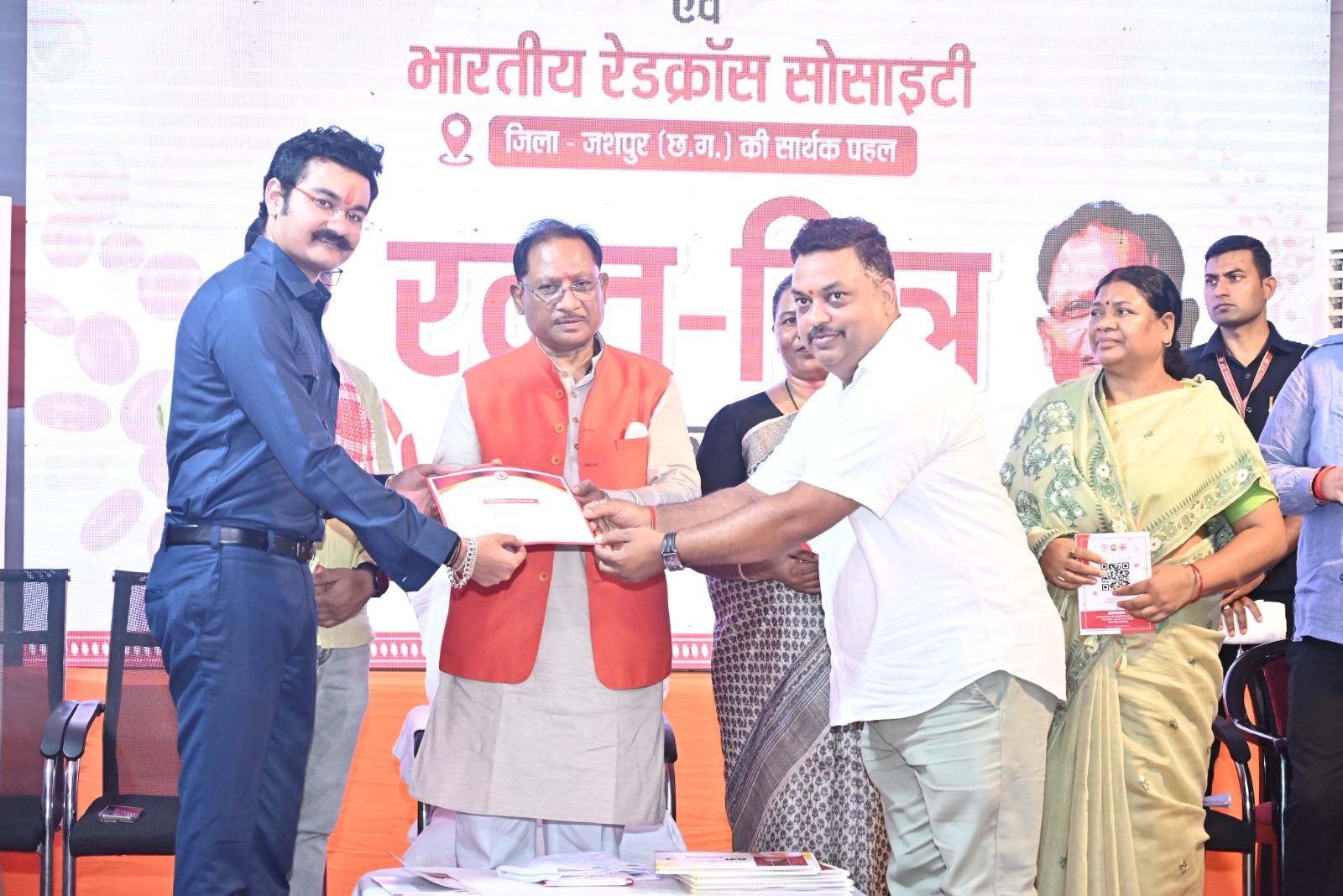 इस अवसर पर मुख्यमंत्री विष्णु देव साय ने कैम्प कार्यालय बगिया में आयोजित कार्यक्रम में भारतीय रेडक्रॉस सोसायटी जशपुर के आजीवन सदस्यों को प्रमाण पत्र वितरित किए और “रक्त-मित्र” पुस्तिका का विमोचन किया। इस दौरान उन्होंने नीरज शर्मा, अजय कुमार कुशवाहा और शिव नारायण सोनी को प्रमाण पत्र प्रदान कर उनके योगदान की सराहना की।