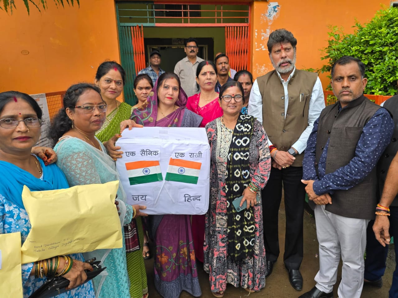 जगदलपुर। रक्षा बंधन के अवसर पर भाजपा महिला मोर्चा द्वारा ” एक राखी सैनिकों के नाम ” आयोजित अभियान के तहत बस्तर की बहनों के हाथों से बनायी गयी साढ़े 22 हज़ार राखियाँ आज शनिवार को भाजपा जिला कार्यालय से सेना मुख्यालय के लिये भेजी गयी। इस महत्वपूर्ण मौके पर भाजपा प्रदेश अध्यक्ष किरण सिंह देव शामिल हुये।