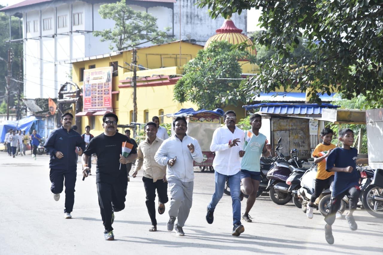 इस दौरान सांसद श्री कश्यप ने हर घर तिरंगा अभियान के अंतर्गत उपस्थित सभी लोगों को अपने घरों में तिरंगा फहराने की अपील की। इस अवसर पर अपर कलेक्टर श्री सीपी बघेल, अपर कलेक्टर एवं खेल विभाग के प्रभारी ऋषिकेश तिवारी, आईपीएस सुमीत कुमार, नगर निगम आयुक्त प्रवीण वर्मा, जिला शिक्षा अधिकारी बीआर बघेल सहित अन्य अधिकारी उपस्थित थे। जिला प्रशासन व खेल एवं युवा कल्याण विभाग द्वारा स्वतंत्रता-तिरंगा दौड़ का आयोजन किया गया, जिसमें में स्थानीय जनप्रतिनिधी और गणमान्य नागरिकों, अधिकारी, कर्मचारियों, शिक्षण संस्थाओं के छात्र-छात्राएं,पुलिस ट्रेनिंग सेंटर व होमगार्ड के जवान, खेल संघों के खिलाड़ी व पदाधिकारियों ने उत्साहपूर्वक भाग लिया। स्वतंत्रता-तिरंगा दौड़ सुबह लगभग 8 बजे मां दंतेश्वरी मंदिर परिसर से संजय मार्केट, हनुमान मंदिर, हाता ग्राउंड, चांदनी चौक , मेन रोड़ होते हुए गोल बाजार चौक से पुनः मां दंतेश्वरी मंदिर प्रागंण पहुंचकर समाप्त हुई।