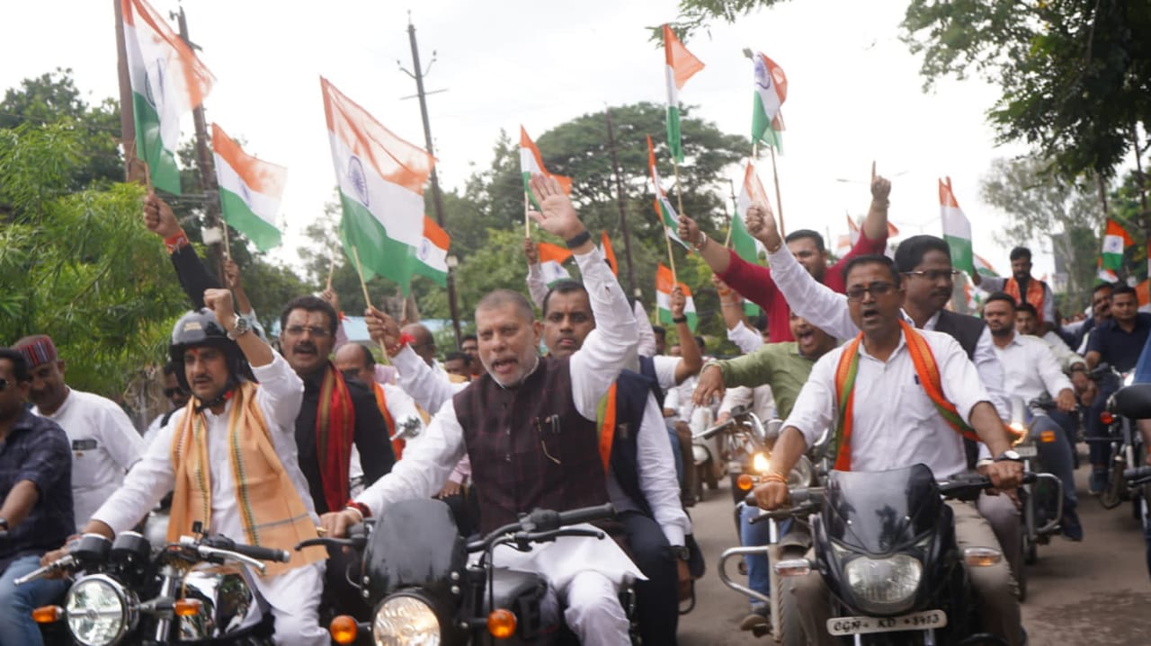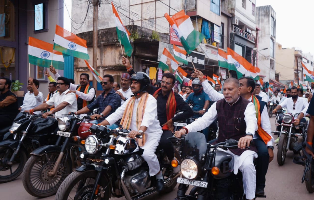 0 मोटर साइकिल रैली के माध्यम से शहर के प्रमुख मार्गो से गुजरी तिरंगा यात्रा, सैकड़ों कार्यकर्ता सहभागी बने