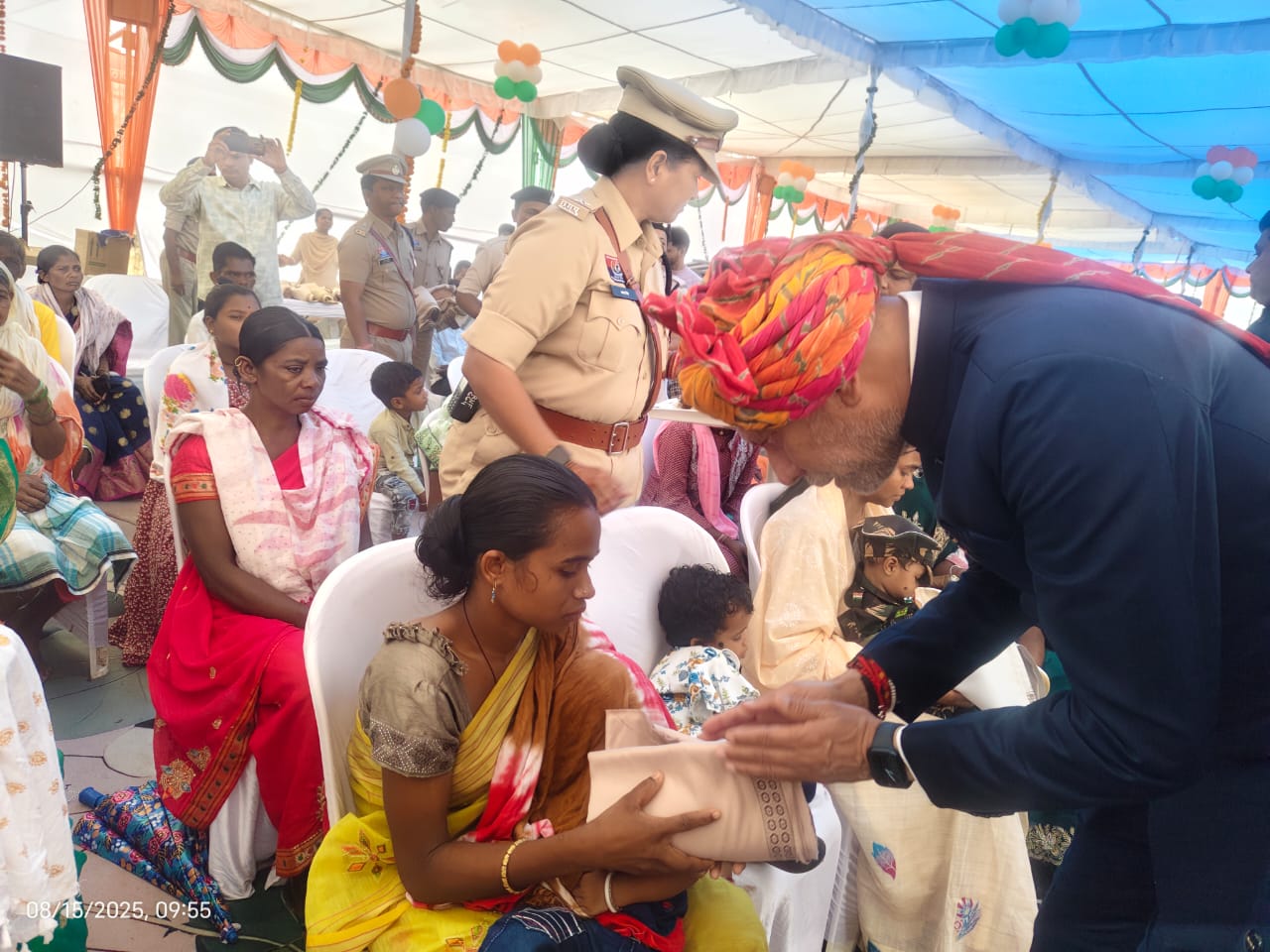 किरण सिंह देव ने इस अवसर पर शहीद जवानों के परिजनों को शॉल और श्रीफल भेंटकर सम्मानित किया। श्री देव ने इन बलिदानी परिवारों को भरोसा दिलाया कि केंद्र की नरेंद्र मोदी सरकार और छत्तीसगढ़ की विष्णु देव साय सरकार आपके हर सुख दुख में आप लोगों के साथ खड़ी है। आपके परिवार के वीरों ने जो बलिदान दिया है उसका छत्तीसगढ़ सदैव ऋणी रहेगा। किरण सिंह देव ने हाईस्कूल मैदान पर आयोजित भव्य स्वतंत्रता दिवस समारोह में मुख्य अतिथि के रूप में उपस्थित थे। उन्होंने सबसे पहला राष्ट्र ध्वज तिरंगा फहराया, फिर पुलिस और अन्य सुरक्षा बलों की संयुक्त परेड ने उन्हें सलामी दी, उनके साथ दंतेवाड़ा के कलेक्टर और एसपी भी खुली जिप्सी पर सवार थे। किरण सिंह देव ने स्वतंत्रता दिवस पर मुख्यमंत्री विष्णु देव साय के संदेश का वाचन कर समारोह को संबोधित किया। शहीद परिवारों को शाल श्रीफल भेंटकर सम्मानित करते समय किरण सिंह देव की आंखें सजल हो उठी थीं। एक शहीद जवान की विधवा को सम्मानित करने के दौरान किरण सिंह देव ने उनसे चर्चा भी की और उनके परिवार का हालचाल जाना।