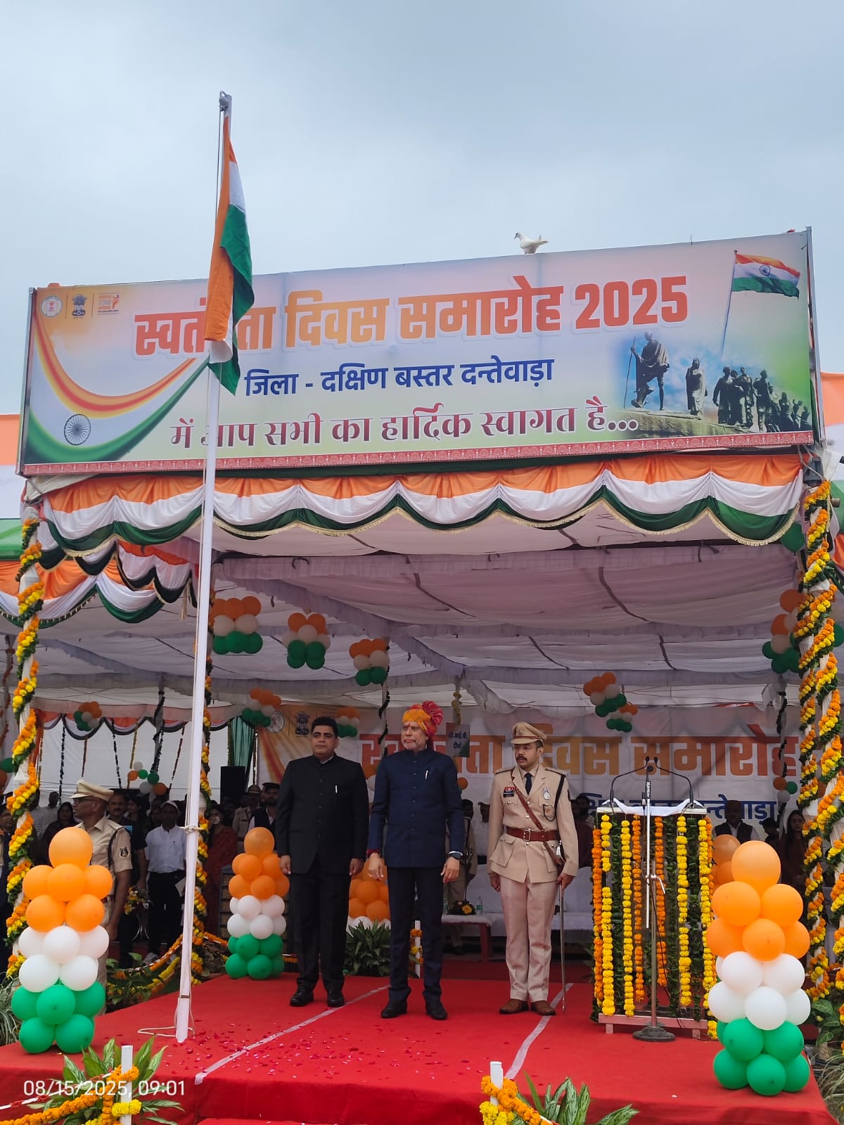 जगदलपुर। प्रदेश भाजपा अध्यक्ष एवं जगदलपुर के विधायक किरण सिंह देव ने दंतेवाड़ा जिला मुख्यालय में आयोजित जिला स्तरीय स्वतंत्रता दिवस समारोह में बतौर मुख्य अतिथि राष्ट्र ध्वज फहराया। उन्होंने पुलिस और अन्य सुरक्षा बलों की संयुक्त परेड की सलामी भी ली।