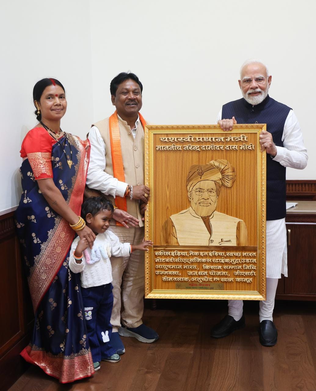 जगदलपुर। बस्तर सांसद महेश कश्यप ने प्रधानमंत्री नरेंद्र मोदी से सौजन्य मुलाकात कर उन्हें विश्व प्रसिद्ध बस्तर दशहरे में आने के लिए आमंत्रण दिया। इस दौरान श्री कश्यप ने श्री मोदी को उनके चित्र वाली काष्ठ कृति भी भेंट की। सांसद कश्यप की बेटी क्षमता ने श्री मोदी के चरण स्पर्श कर उनसे आशीर्वाद लिया। बस्तर सांसद महेश कश्यप ने आज अपनी धर्मपत्नी चंपा कश्यप व सुपुत्री क्षमता कश्यप के साथ प्रधानमंत्री नरेंद्र मोदी से संसद भवन में सौजन्य मुलाकात की। इस अवसर पर सांसद कश्यप ने बस्तर की सांस्कृतिक धरोहर और विश्व प्रसिद्ध बस्तर दशहरे के लिए प्रधानमंत्री को औपचारिक आमंत्रण दिया। प्रधानमंत्री मोदी ने इस आमंत्रण को आत्मीयता के साथ स्वीकार करते हुए बस्तर दशहरे में समय निकालकर शामिल होने का आश्वासन दिया। मुलाकात के दौरान सांसद महेश कश्यप ने प्रधानमंत्री को स्मृति चिन्ह भेंट किया और बस्तर में केंद्र सरकार द्वारा संचालित विकास कार्यों के लिए कृतज्ञता व्यक्त की।