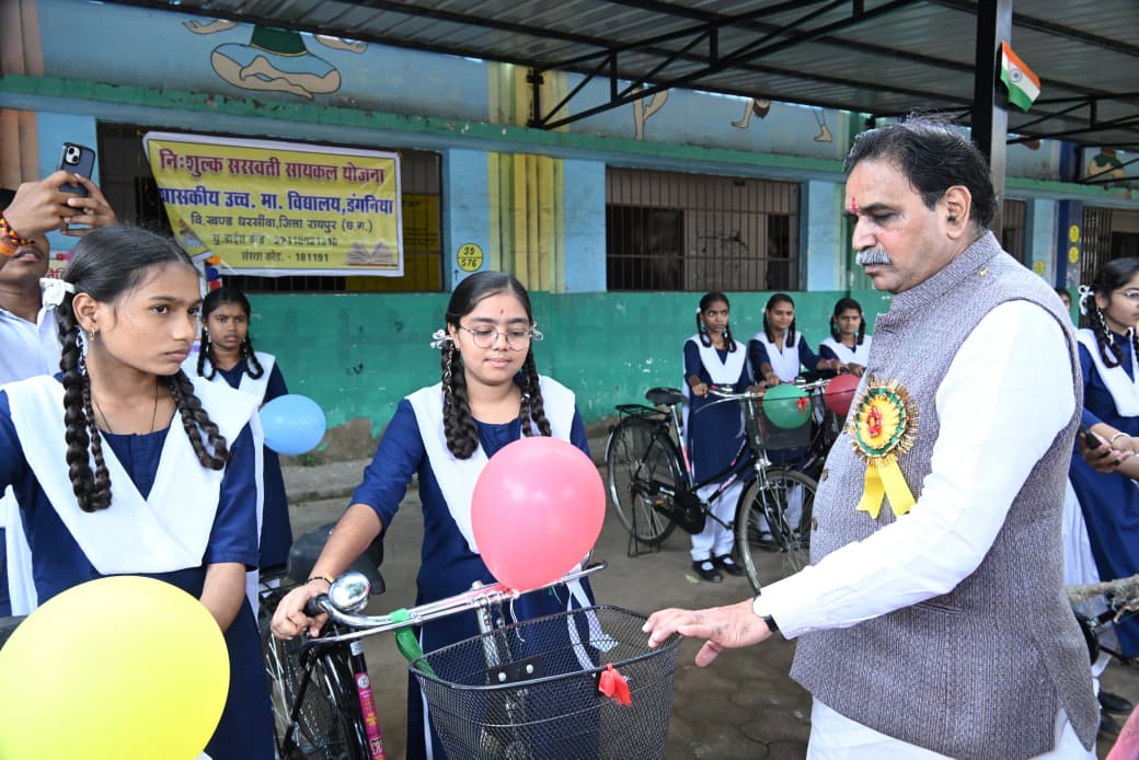 रायपुर। रायपुर पश्चिम विधानसभा क्षेत्र के विधायक एवं पूर्व कैबिनेट मंत्री राजेश मूणत ने शुक्रवार को पंडित रविशंकर शुक्ल विश्वविद्यालय परिसर स्थित शासकीय उच्चतर माध्यमिक शाला में सरस्वती साइकिल योजना के तहत छात्र-छात्राओं को साइकिल वितरित की। इस अवसर पर उन्होंने विद्यार्थियों से शाला में नियमित उपस्थिति रखने और कठिन परिश्रम कर प्रवीण्य सूची में स्थान बनाने का आह्वान किया।
