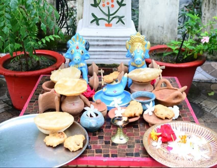 ० अपने निवास पर पारंपरिक रूप से पूजा अर्चना कर त्यौहार मनाया