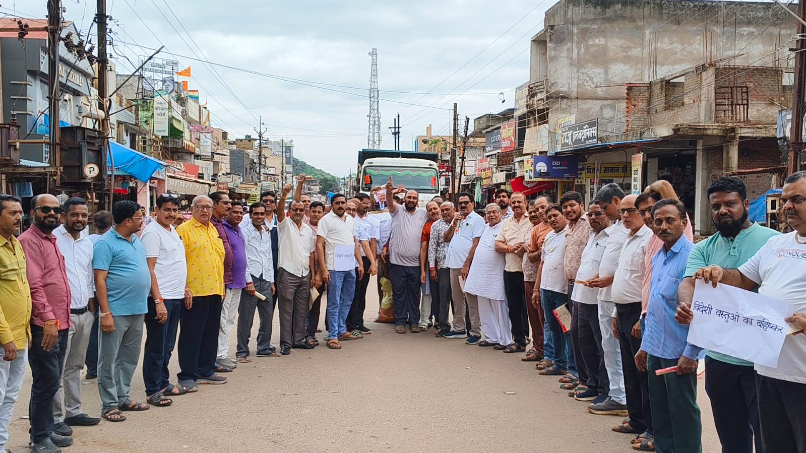 बालोद। छत्तीसगढ़ चैंबर ऑफ़ कॉमर्स के आह्वान पर दल्ली राजहरा इकाई एवं राजहरा व्यापारी संघ द्वारा विदेशी कंपनियों से ऑनलाइन खरीदी बंद करने और विदेशी वस्तुओं का उपयोग न कर देशी वस्तुओं का उपयोग करने के लिए प्रेरित करने के लिए आज सभा का आयोजन किया गया वहां शपथ लिया गया कि हम सब विदेशी वस्तुओं का उपयोग न कर स्वदेशी वस्तुओं का उपयोग करेंगे और अपने दुकानों में पर भी स्वदेशी वस्तुओं का प्रचार प्रसार करेंगे ।वही अमेरिकी राष्ट्रपति ट्रंप का भारत पर बेवजह धमकी स्वरूप टैरिफ लगाने के कारण डोनाल्ड ट्रंप का पुतला दहन किया गया।