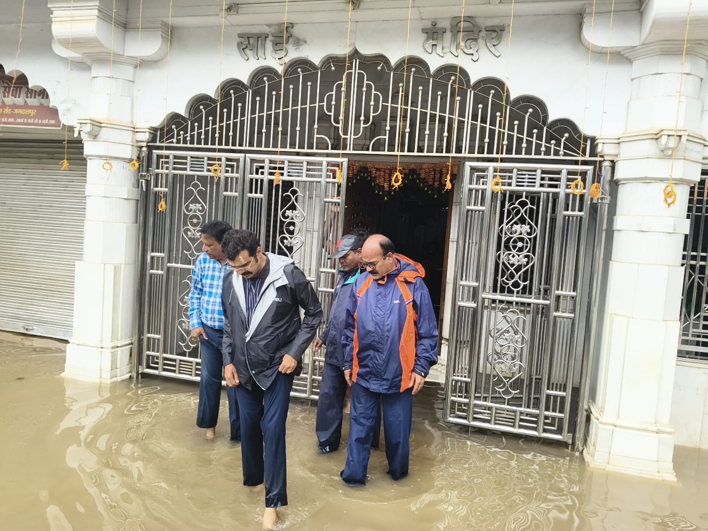 जगदलपुर। लगातार हो रही तेज बारिश से जगदलपुर शहर के कुछ हिस्सों में जलभराव की स्थिति पैदा हुई है। सुबह से ही महापौर संजय पाण्डे बरसते पानी में अपनी टीम के साथ प्रभावित क्षेत्रों का जायजा लेने निकल पड़े। महादेव घाट, धरमपुरा सहित कुछ इलाकों में तेज बारिश से जल भराव की स्थिति उत्पन्न हुई है। वहीं साईं मंदिर परिसर में भी जलभराव की समस्या सामने आई।