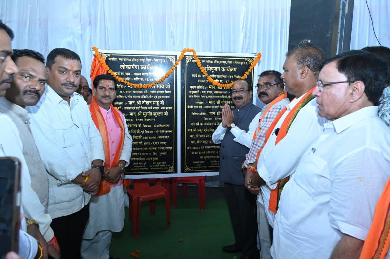 रायपुर। केन्द्रीय आवास और शहरी कार्य राज्य मंत्री तोखन साहू तथा उप मुख्यमंत्री और बिलासपुर जिले के प्रभारी मंत्री अरुण साव ने आज रतनपुर नगर पालिका में 4 करोड़ रुपए से ज्यादा के विकास कार्याें का लोकार्पण और भूमिपूजन किया। इनमें एक करोड़ 67 लाख 70 हजार रुपए की लागत से नगर पालिका के नवीन कार्यालय का भूमिपूजन, 30 लाख रुपए की लागत से अटल परिसर निर्माण एवं 48 लाख 66 हजार रुपए की लागत से आश्रय स्थल का लोकार्पण शामिल हैं। रतनपुर में प्रधानमंत्री आवास योजना (शहरी) 2.0 के तहत एक करोड़ 90 लाख रुपए की लागत से 76 कार्य स्वीकृत हुए हैं। दोनों अतिथियों ने इनमें से 5-5 हितग्राहियों को अनुज्ञा पत्र और पूर्ण हो चुके आवास के लिए आवास की चाबी सौंपी। कार्यक्रम में बेलतरा विधायक सुशांत शुक्ला, कोटा विधायक अटल श्रीवास्तव, रतनपुर नगर पालिका अध्यक्ष लवकुश कश्यप, जिला पंचायत अध्यक्ष राजेश सूर्यवंशी भी शामिल हुए।