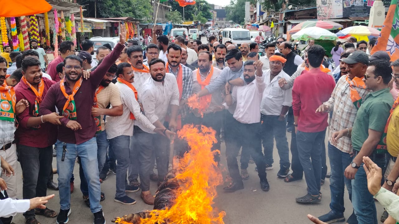 स्थानीय गोल बाजार चौराहे में भारी संख्या में एकत्र भाजपा के कार्यकर्ताओं ने राहुल गाँधी का पुतला जलाया। भाजपा जिला अध्यक्ष वेदप्रकाश पाण्डेय ने कहा कि कांग्रेस का चरित्र कभी नहीं बदल सकता। कांग्रेस स्तरहीन राजनीति पर उतर आयी है और यह कांग्रेस पार्टी के डीएनए में शामिल हैं। प्रधानमंत्री नरेंद्र मोदी के विरुद्ध अमर्यादित भाषा व गाली की घटना सत्ता से लगातार दूर हो रही कांग्रेस की हताशा है। कांग्रेस नेतृत्व की शह पर यह घटनायें हो रही है। प्रधानमंत्री श्री मोदी को कांग्रेस के मंच से गाली देने की दुर्भाग्यपूर्ण घटना समूचे देश व देशवासियों का अपमान है। जिसे माफ नहीं किया जा सकता। भारतीय जनता पार्टी इसकी कड़े शब्दों में भर्त्सना करती है। आक्रोशित भाजपा कार्यकर्ताओं द्वारा राहुल गाँधी का पुतला फूंक कर विरोध जताया गया है। कांग्रेस नेता राहुल गाँधी देश के समक्ष माफी मांगे।