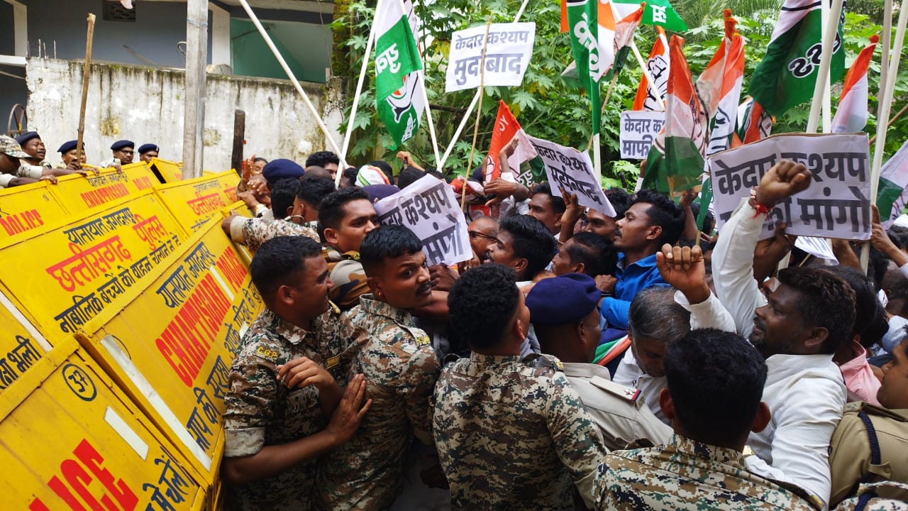 भानपुरी। प्रदेश कांग्रेस अध्यक्ष दीपक बैज के निर्देश पर भानपुरी ब्लॉक में कांग्रेस कार्यकर्ताओं ने मंत्री केदार कश्यप के खिलाफ जोरदार प्रदर्शन किया। मंत्री पर एक चतुर्थ वर्ग कर्मचारी को थप्पड़ मारने और उसकी माँ के साथ अभद्र भाषा का प्रयोग करने का आरोप है।