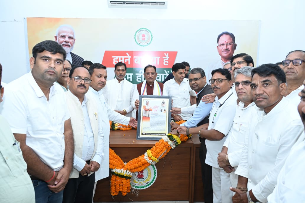 रायपुर। राजागुरु धर्मगुरु परम पूज्य गुरु बालदास साहेब के दिव्य मार्गदर्शन एवं नेतृत्व में सतनाम धर्म महासभा तथा सतनामी समाज छत्तीसगढ़ के पदाधिकारी एवं सदस्यों का प्रतिनिधि मंडल मुख्यमंत्री निवास पहुँचकर मुख्यमंत्री से मुलाकात की और गुरु खुशवंत साहेब को कैबिनेट मंत्री का दायित्व प्रदान करने हेतु अभिनंदन पत्र भेंट कर आभार व्यक्त किया। मुख्यमंत्री विष्णु देव साय जी का सतनामी समाज के प्रति आत्मीय सहयोग, संवेदनशीलता और मार्गदर्शन निरंतर प्राप्त हो रहा है। भाजपा सरकार समाज की उन्नति, प्रगति एवं समग्र विकास के लिए दृढ़ संकल्पित होकर कार्य कर रही है।