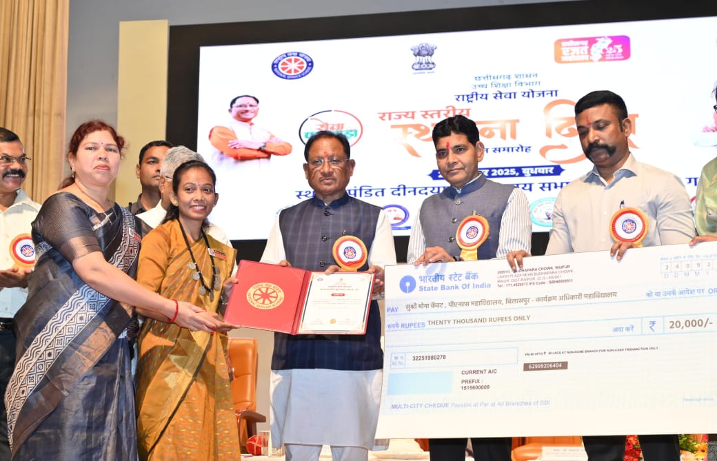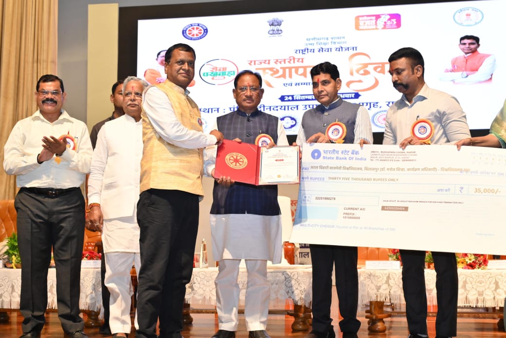मुख्यमंत्री विष्णु देव साय ने इस अवसर पर राष्ट्रीय सेवा योजना की पत्रिका ‘समर्पण’ और विकसित भारत क्विज कार्यक्रम के पोस्टर का विमोचन किया। उन्होंने राष्ट्रीय सेवा योजना अंतर्गत उत्कृष्ट कार्य कर रही संस्थाओं, अधिकारियों और स्वयंसेवकों को सम्मानित भी किया।