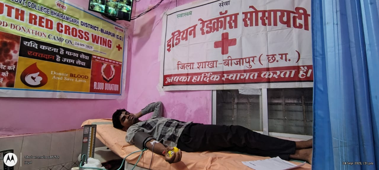 बीजापुर। भारतीय रेडक्रॉस सोसायटी जिला संघ बीजापुर के तत्वावधान में शासकीय धुर्वाराव माड़िया महाविद्यालय के यूथ रेडक्रॉस इकाई द्वारा भैरमगढ़ अस्पताल में एक दिवसीय रक्तदान शिविर का आयोजन किया गया। इस शिविर में कुल 10 यूनिट रक्त का संग्रहण किया गया।