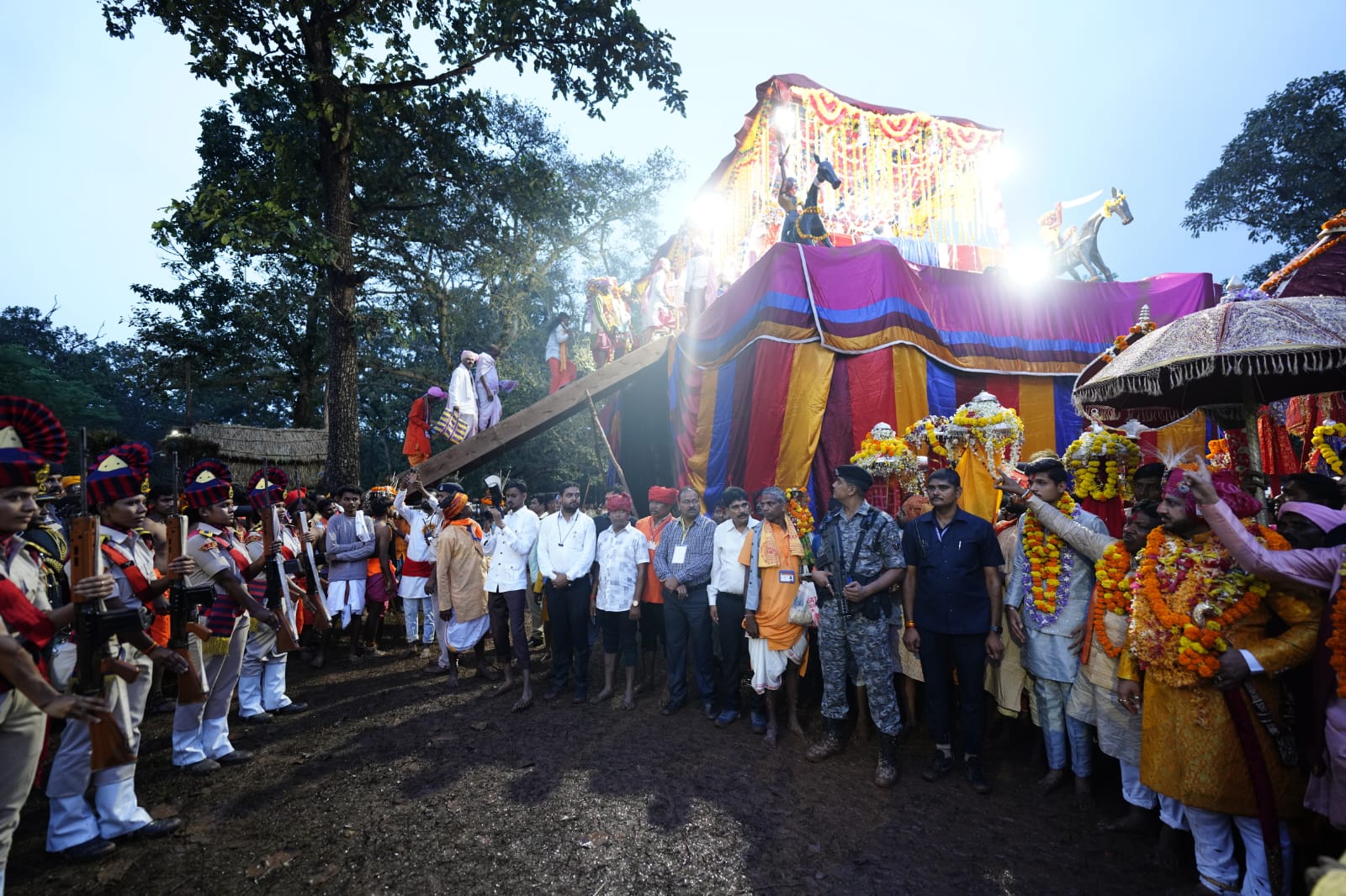 दरअसल, विजयादशमी की रात (भीतर रैनी) को माड़िया समुदाय के ग्रामीणों ने परंपरानुसार आठ पहियों वाले विशाल रथ को चुराकर नगर के समीप कुम्हड़ाकोट जंगल में छिपा दिया था। यह रस्म उस ऐतिहासिक घटना को याद करती है जब एक बार ग्रामीणों ने राजा से असंतुष्ट होकर रथ चुरा लिया था।