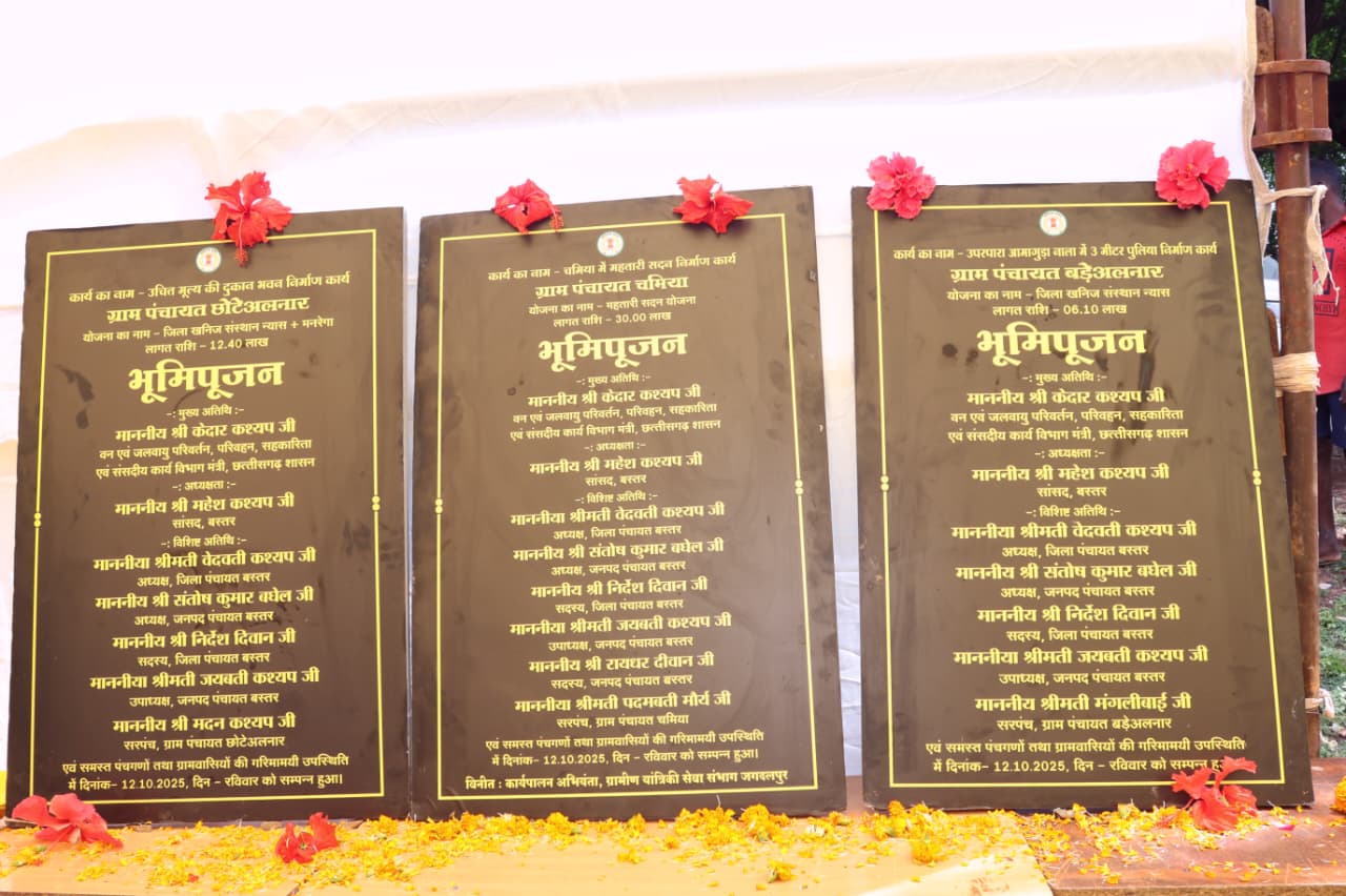 नारायणपुर। वनमंत्री केदार कश्यप ने आज नारायणपुर विधानसभा क्षेत्र के विभिन्न ग्राम पंचायतों में ₹48 लाख से अधिक के विकास कार्यों का भूमिपूजन किया। यह भूमिपूजन कार्यक्रम ग्रामीण अधोसंरचना को सुदृढ़ करने और जनसुविधाओं के विस्तार की दिशा में एक बड़ा कदम है। इन कार्यों के अंतर्गत ग्राम पंचायत मचिया में ₹30 लाख की लागत से महतारी सदन का निर्माण, ग्राम बड़े अलनार में ₹6.10 लाख से पुलिया निर्माण, तथा छोटे अलनार में ₹12.40 लाख की लागत से उचित मूल्य की दुकान भवन का निर्माण किया जाएगा।