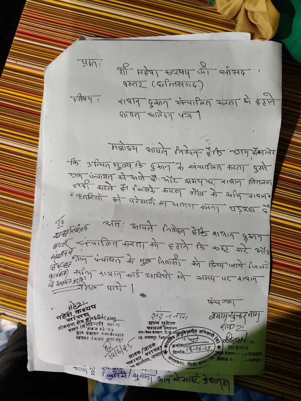 जगदलपुर। जनपद पंचायत जगदलपुर के अंतिम छोर पर स्थित और नक्सल प्रभावित ग्राम पंचायत कैका चेरबहार के ग्रामीणों के हिस्से का सरकारी राशन दुकान संचालक हजम कर रहा है। ग्रामीणों को किसी भी माह पूरा राशन नहीं दिया जाता और दुकान संचालक अपनी मर्जी एवं सुविधा के अनुसार दुकान खोलता है। इसे लेकर ग्रामीणों का गुस्सा आज फूट पड़ा। उन्होंने दुकान में ताला जड़ दिया। इसके बाद दर्जनों ग्रामीण राशन दुकान के सामने ही धरने पर बैठ गए। ग्राम कैका चेरबहार अति नक्सली प्रभावित क्षेत्र में आता है वहां के सरकारी राशन दुकान में चावल, शक्कर, गुड़, चना आदि खाद्यान्न कालाबाजारी खुलकर की जा रही है। ग्राम के उप सरपंच और दर्जनों ग्रामीण इस मामले की लिखित शिकायत बस्तर सांसद महेश कश्यप और एसडीएम से कई दफे कर चुके हैं, मगर आज तक कोई कार्रवाई नहीं हुई। वर्षों से परेशान होते आ रहे ग्रामीणों ने आज दुकान में ताला लगा दिया है। ग्राम पंचायत कैका चेरबहार में लगातार 5 साल से शिकायत होने के बाद भी महीने के 15 दिन बाद चावल व अन्य खाद्यान्न का वितरण किया जाताहै। यहां चावल एवं अन्य खाद्यान्न लेने 5-6 किलोमीटर दूर स्थित गांवों के ग्रामीण आते हैं। इनमें ज्यादातर लोग महिलाएं और बुजुर्ग होते हैं। चावल व खाद्यान्न का वितरण समय पर नहीं होता है। वितरण करने वाले 12 बजे के बाद राशन दुकान में पहुंचते हैं। कई लोग मजदूरी करने जाना होता है समय पर चावल वितरण नहीं होने के कारण ये लोग मजदूरी करने नहीं जा पाते। शिकायत यह भी है कि अशिक्षित लोगों को कम राशन दिया जाता है। SDM और खाद्य विभाग में शिकायत करने के बाद भी दुकान संचालक पर कोई कार्रवाई नहीं हुई। इससे नाराज ग्रामवासियों द्वारा सामूहिक निर्णय लेकर राशन दुकान में ताला लगा दिया गया। ग्रामीणों ने एसडीएम और खाद्य विभाग के अधिकारियों से अनुरोध किया है कि जल्द से जल्द राशन दुकान संचालन की जिम्मेदारी ग्राम पंचायत को सौंपी जाए। इस राशन दुकान का संचालन वर्तमान में उर्मिला सेठिया और अजंबर सेठिया द्वारा किया जा रहा है, जो दूसरी ग्राम पंचायत के निवासी हैं।