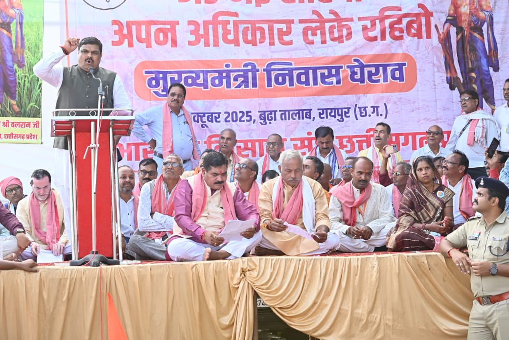 रायपुर। भारतीय किसान संघ छत्तीसगढ़ प्रदेश के द्वारा आज बूढ़ा तलाब स्थित धरना स्थल पर आंदोलन किया गया था। जिसे देखते हुए मुख्यमंत्री विष्णुदेव साय के मार्गदर्शन में शिक्षा मंत्री गजेंद्र यादव आंदोलनरत भारतीय किसान संघ के प्रतिनिधि मंडल से मुलाकात की और उनसे उनकी समस्याओं के संबंध में जाना। जहां बिंदुवार सभी नौ सूत्रीय मांगों पर उन्होंने प्रतिनिधियों से सहानुभूतिपूर्वक सभी मांगों के संबंध में चर्चा की। इसके बाद वे बूढ़ा तलाब स्थित धरना स्थल में पहुंचे। जहां बड़ी संख्या में आये किसानों ने मंत्री श्री यादव का अभिवादन किया।