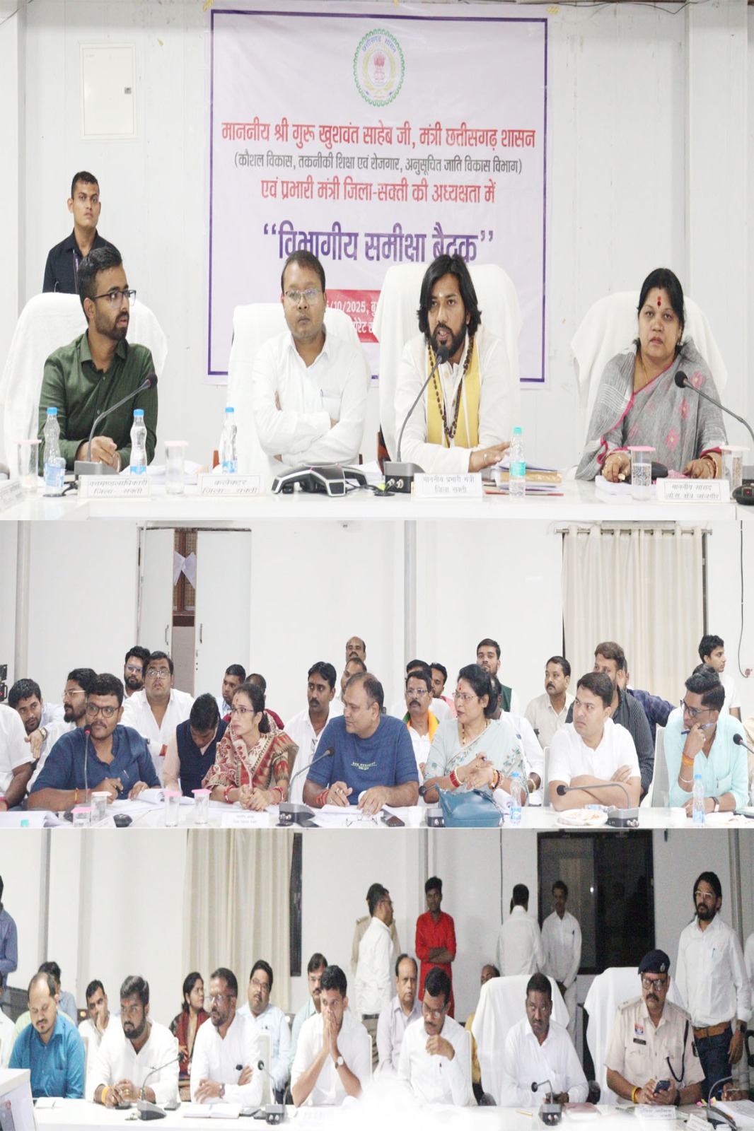 सक्ती। सक्ती जिला के प्रभारी मंत्री गुरु खुशवंत साहेब की अध्यक्षता में जिला कार्यालय सभागार में पहली समीक्षा बैठक आयोजित की गई। बैठक में विभागवार योजनाओं, राजस्व प्रकरणों, लोकसेवा गारंटी एवं विकास कार्यों की विस्तृत समीक्षा की गई।