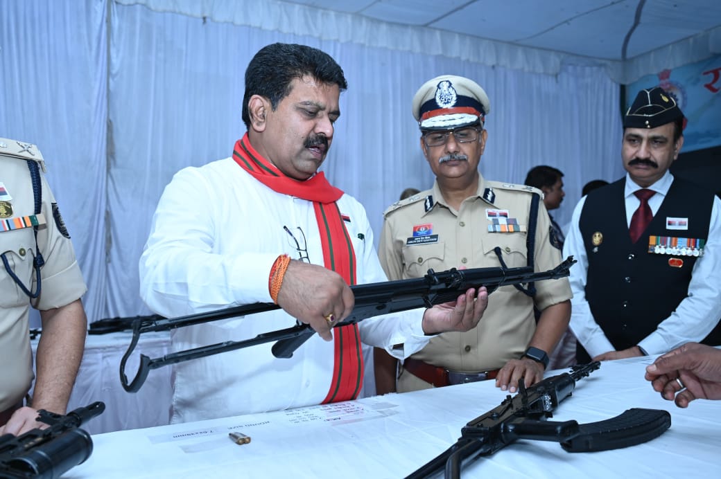 उपमुख्यमंत्री श्री शर्मा ने 4 थीं वाहिनी द्वारा लगाए गए राज्य स्तरीय शस्त्र प्रदर्शनी का भी अवलोकन किया। जिसमें एलएमजी, यूबीएलजी, असाल्ट रायफल, एसएलआर, जेवीपीसी, एके 47, टियर गन, एक्शन गन आदि का प्रदर्शन किया गया था। इस दौरान उन्होंने भारत में निर्मित हथियारों पर उत्साह प्रदर्शित किया और अधिकारियों से चर्चा में कहा कि भारत में निर्मित ये अत्याधुनिक हथियार प्रधानमंत्री नरेन्द्र मोदी की दूरदर्शिता का परिणाम हैं ये आत्मनिर्भर भारत की ओर हमारे बढ़ते कदम हैं।