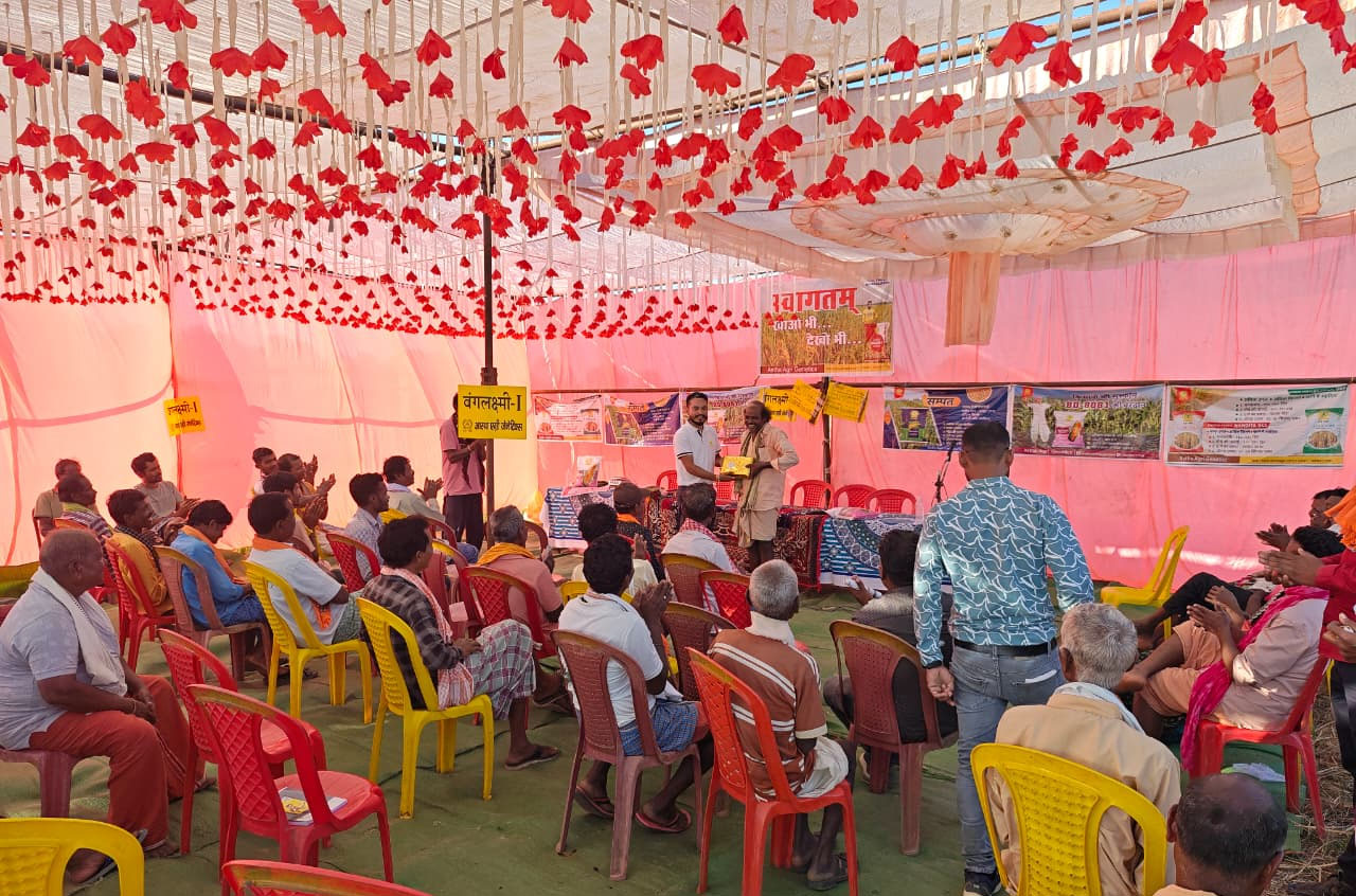बकावंड विकासखंड के ग्राम उलनार के बजावंड रोड में आस्था एग्री जेनेटिक कंपनी द्वारा किसान सम्मेलन का आयोजन किया गया। सम्मेलन में किसान धनेश्वर बघेल के खेत में लगी धान फसल की जानकारी दी गई।यह आस्था एग्री जेनेटिक कंपनी का धान रिसर्च वैरायटी बंगलक्ष्मी वैरायटी का धान है। यह रिसर्च वैरायटी का धान है। इस धान की फसल 140-145 दिन में तैयार हो जाती है। इसमें बीमारी भी कम लगती है और व्यवस्था एवं रख रखाव की जरूरत भी कम पड़ती है। किसान सम्मेलन में इस रिसर्च किस्म के धान की अच्छी परफॉर्मेंस को देखकर सभी किसान भी काफी उत्साहित नजर आए और धान की नस्ल को देखकर किसान इस अच्छी किस्म के चयन के लिए प्रोत्साहित हुए। सोमानी ट्रेड लिंक के मालिक इस सम्मेलन में उपस्थित रहे एवं कंपनी के स्टेट इंचार्ज अधिकारी संदीप उपाध्याय, टेरिटरी मैनेजर दीपकेश सेठिया के सानिध्य में यह किसान सम्मेलन आयोजित किया गया। जिसमें उपस्थित 140 किसानों द्वारा इस वैरायटी के अच्छी होने की बात कही गई। किसानों द्वारा बताया गया एवं धान में बीमारी एवं अन्य प्रकार की समस्या नही होने की चर्चा भी किसानों के बीच होती रही। कंपनी द्वारा और भी कई किस्म की हाई धान, मक्का बाजार में लाया गया है जो काफी अच्छी व किसान को मुनाफा देने वाली किस्में हैं। किसान आस्था एग्री जेनेटिक के धान व मक्का लगाकर कम बीमारी के बीच बेहतर उत्पादन कर रहे हैं। आगे भी कंपनी किसानों को और भी बेहतर सेवा देने प्रयासरत रहेगी।