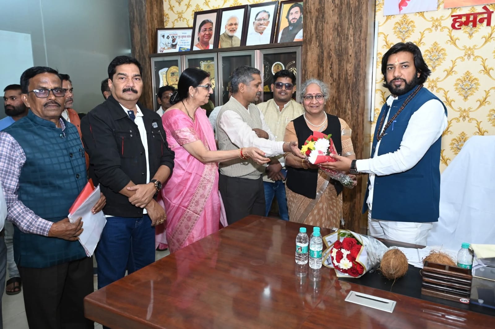 रायपुर । छत्तीसगढ़ सरकार के कैबिनेट मंत्री एवं आरंग विधानसभा क्षेत्र के विधायक गुरु खुशवंत साहेब ने सोमवार को आरंग के नेताजी चौक स्थित क्षेत्रीय कार्यालय में जनदर्शन आयोजित किया। मंत्री बनने के बाद पहली बार अपने क्षेत्रीय कार्यालय पहुंचे मंत्री का आमजन और जनप्रतिनिधियों ने गर्मजोशी से स्वागत किया। सुबह से ही कार्यालय परिसर में लोगों की भीड़ उमड़ पड़ी थी तथा बड़ी संख्या में नागरिक अपनी समस्याएं लेकर पहुंचे।