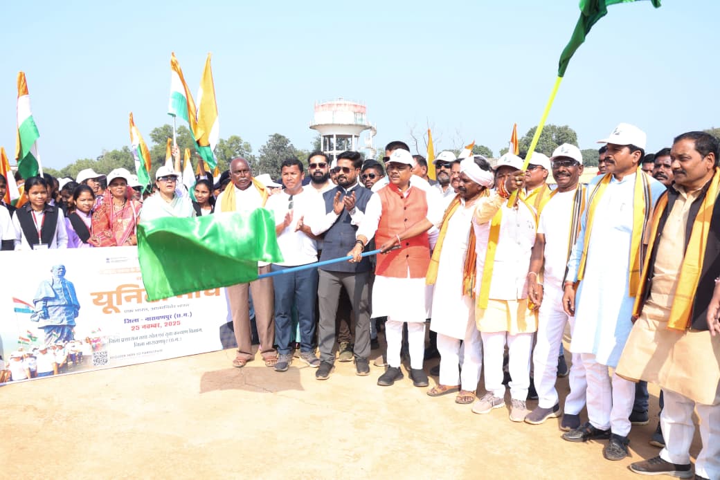 नारायणपुर। जिला प्रशासन द्वारा सरदार वल्लभभाई पटेल की जयंती के अवसर पर हाईस्कूल मैदान से बखरूपारा तक पैदल एकता मार्च का भव्य आयोजन किया गया। कार्यक्रम की शुरुआत भारत माता, छत्तीसगढ़ महतारी एवं सरदार वल्लभभाई पटेल के छायाचित्रों की पूजा-अर्चना करके की गई। एकता मार्च में उत्साह के साथ बड़ी संख्या में जनप्रतिनिधि, अधिकारियों, सामाजिक संगठनों के लोगों और युवाओं ने शामिल होकर देश की एकता और अखंडता को बनाए रखने का संदेश दिया। इस अवसर पर राज्य सरकार के वन एवं जलवायु परिवर्तन, परिवहन, कौशल विकास, सहकारिता और संसदीय कार्य मंत्री केदार कश्यप एवं बस्तर सांसद महेश कश्यप के नेतृत्व में हरी झंडी दिखाकर भव्य पदयात्रा निकाली गई।