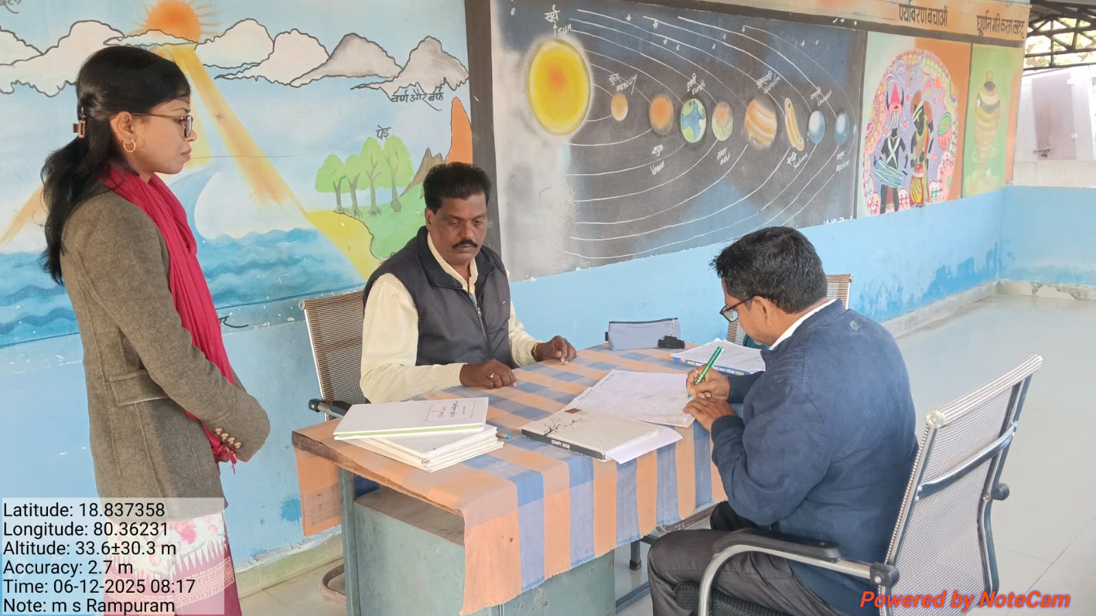 भोपालपटनम। ब्लॉक के खंड शिक्षा अधिकारी विजय कोरम ने आज सुबह करीब 8 बजे माध्यमिक शाला देपला एवं प्राथमिक शाला रामपुरम का आकस्मिक निरीक्षण किया। निरीक्षण के दौरान विद्यालयों के प्रधान अध्यापक, शिक्षक, शिक्षिकाएं, चपरासी एवं छात्र-छात्राएं उपस्थित रहे।