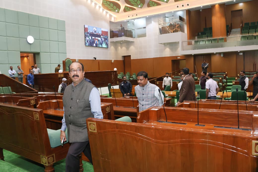 इस दौरान मंत्रियों को अधिकारियों ने विधानसभा भवन से जुड़ी व्यवस्थाओं और आगामी कार्यों की जानकारी दी। निरीक्षण के दौरान मंत्री श्री कश्यप ने अधिकारियों को सभी कार्य समयबद्ध और प्रभावी रूप से पूरा करने के निर्देश दिए। उन्होंने कहा कि शीतकालीन सत्र महत्वपूर्ण है। सदन की कार्यवाही सुचारू रूप से चल सके, इसके लिए सभी आवश्यक व्यवस्थाओं को पहले से दुरुस्त होना जरूरी है। जनता से जुड़े विषयों पर गंभीरता से चर्चा हो, यही हमारी प्राथमिकता है। मंत्री श्री कश्यप ने बैठक कक्ष, प्रेस गैलरी, वीआईपी लाउंज, सुरक्षा व्यवस्था और कर्मचारियों की तैनाती की भी जानकारी ली। उन्होंने सत्र के दौरान उपयोग होने वाले तकनीकी उपकरणों, ऑडियो-वीडियो सिस्टम और दस्तावेज प्रबंधन की तैयारियों की भी समीक्षा की। इस अवसर पर विधानसभा सचिव दिनेश शर्मा सहित अन्य वरिष्ठ अधिकारी उपस्थित रहे।