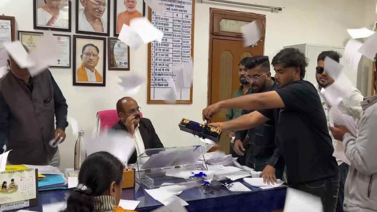 दुर्ग। भिलाई के कल्याण कॉलेज में NSUI कार्यकर्ताओं द्वारा मचाए गए हंगामे ने पूरे परिसर को झकझोर दिया। मामला इतना गंभीर हो गया कि प्राचार्य डॉ. विनय शर्मा तक धक्का-मुक्की और अपमानजनक व्यवहार का शिकार हुए। इस दौरान NSUI कार्यकर्ताओं ने प्राचार्य को जूते की माला पहनाने की कोशिश की और सरकारी दस्तावेजों को नुकसान पहुंचाकर उन्हें नष्ट करने की कोशिश भी की।