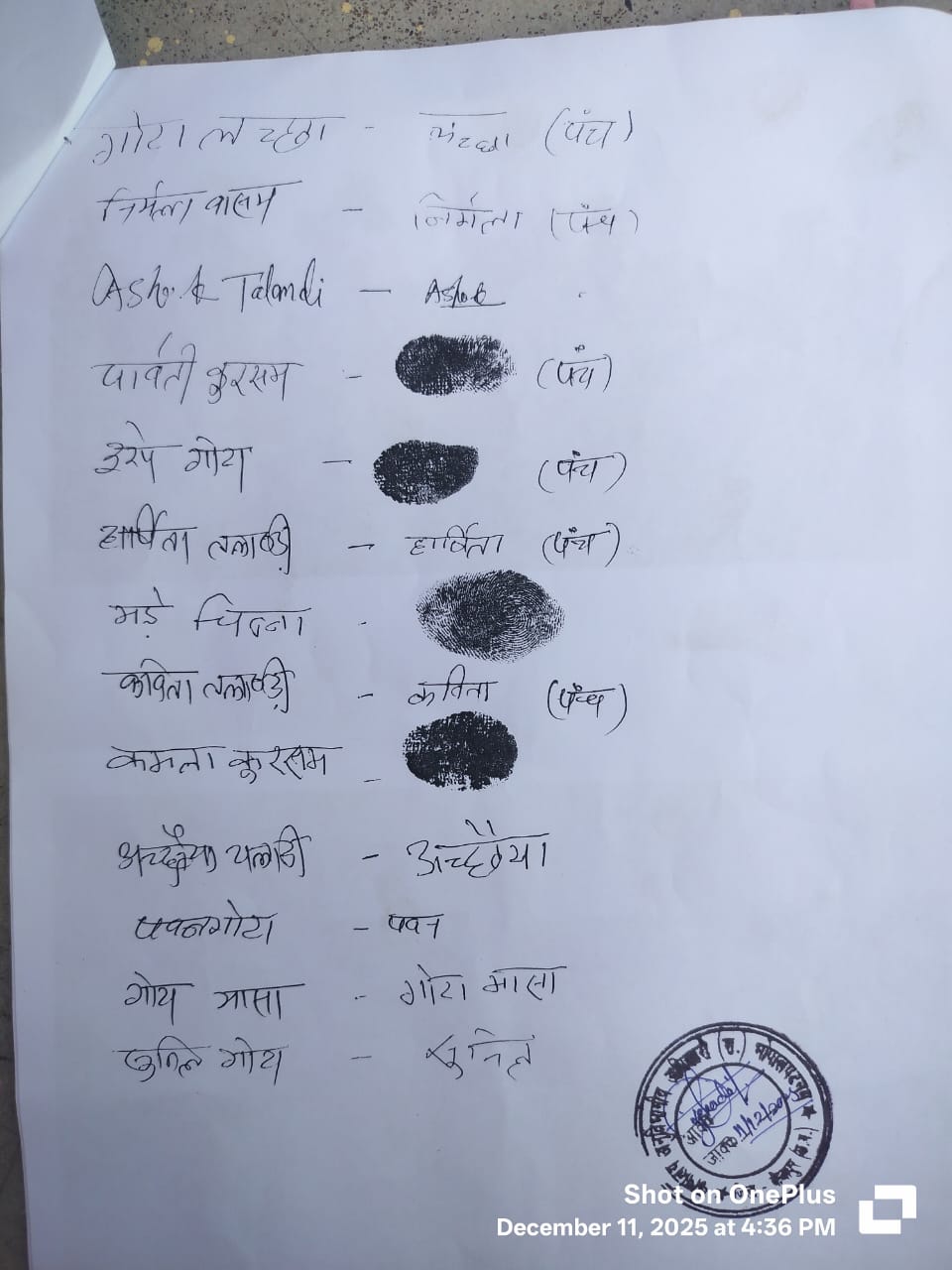 शिकायत में यह भी बताया गया है कि नियद नेल्लानार योजना के तहत आवश्यक दस्तावेज बनवाने में सरपंच का सहयोग नहीं मिलने से ग्रामीणों को गंभीर परेशानी झेलनी पड़ रही है। कई बार बुलाने के बाद भी सरपंच पंचायत में उपस्थित नहीं हुईं। इसके अलावा, बीपीएल कार्डधारियों को मिलने वाले राशन को ट्रैक्टर से गांव तक पहुंचाया गया था, परंतु ट्रैक्टर मालिकों को आज तक भुगतान नहीं किया गया है।