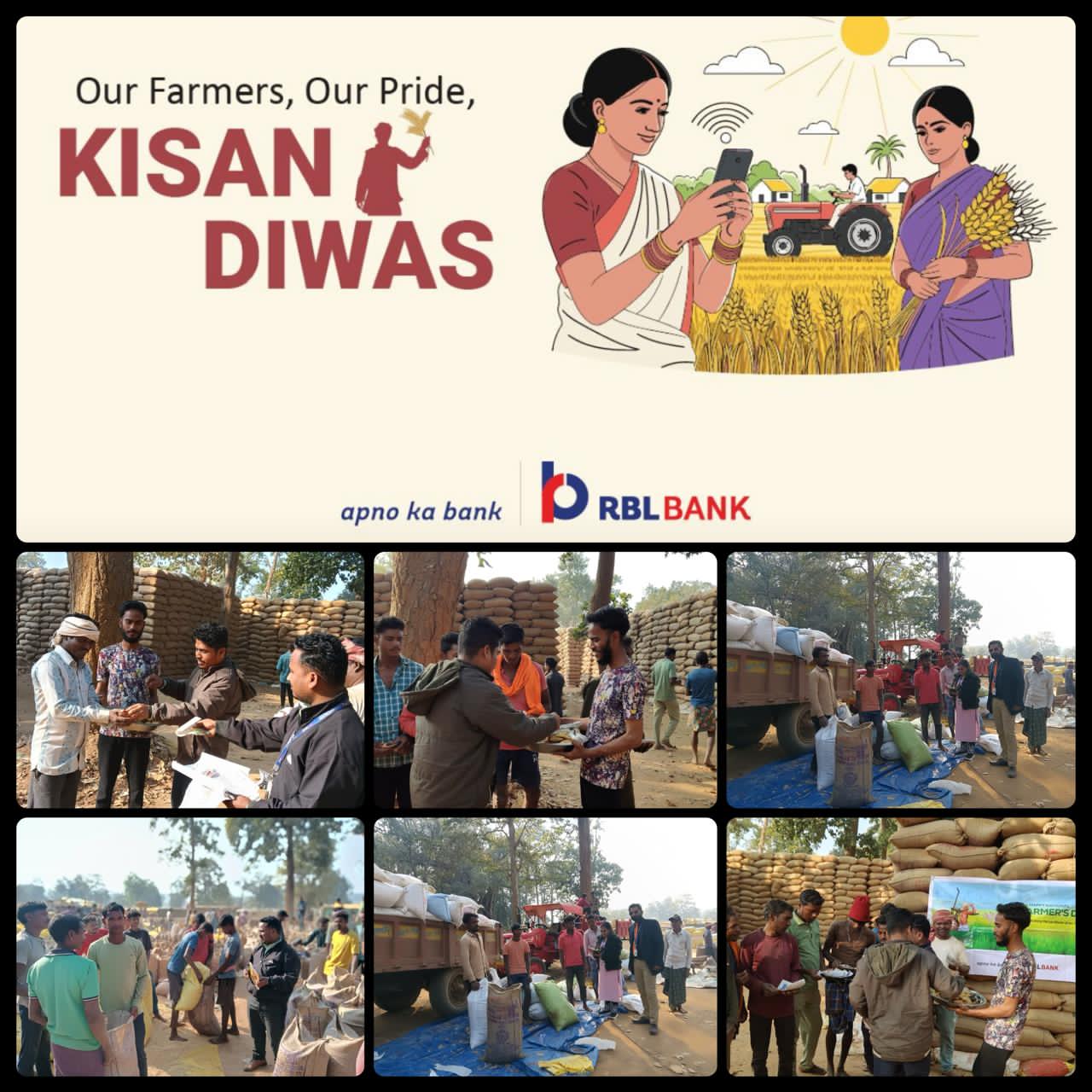 कार्यक्रम के दौरान आरबीएल बैंक के कपिल वर्मा, तेजलाल सहित बैंक के अन्य स्टाफ सदस्यों ने उपस्थित किसानों से संवाद किया और उन्हें खेती के क्षेत्र में आगे बढ़ने, आधुनिक कृषि तकनीक अपनाने तथा आने वाले वर्ष में बेहतर उत्पादन करने के लिए प्रेरित और प्रोत्साहित किया। बैंक स्टाफ ने किसानों को यह भरोसा दिलाया कि आरबीएल बैंक सदैव किसानों के साथ खड़ा है और उनकी आर्थिक मजबूती के लिए हर संभव सहयोग करता रहेगा। किसान दिवस के अवसर पर किसानों के चेहरे पर मुस्कान लाने के लिए आरबीएल बैंक की ओर से मिठाइयों का वितरण भी किया गया। इस छोटे लेकिन आत्मीय प्रयास ने किसानों का दिल जीत लिया और बैंक व किसानों के बीच विश्वास और सहयोग का रिश्ता और भी मजबूत हुआ।स्थानीय किसानों ने इस आयोजन की सराहना करते हुए कहा कि इस प्रकार के कार्यक्रम न केवल किसानों का मनोबल बढ़ाते हैं, बल्कि उन्हें भविष्य के लिए नई ऊर्जा और आत्मविश्वास भी प्रदान करते हैं। कुल मिलाकर, ग्राम पंचायत कोलवाल के धान खरीदी केंद्र में आयोजित यह किसान दिवस कार्यक्रम किसान हितैषी सोच और सकारात्मक पहल का बेहतरीन उदाहरण बनकर सामने आया।