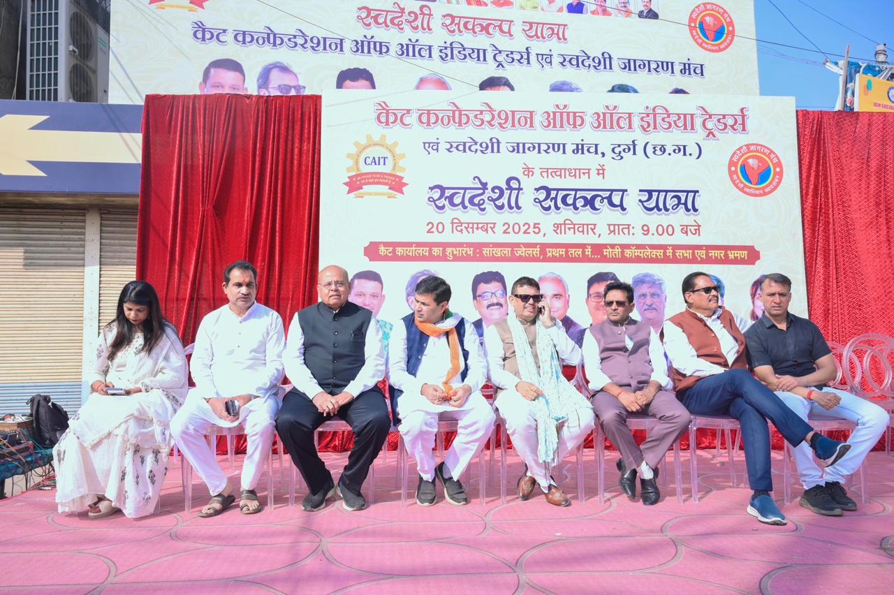 रायपुर। कैट एवं स्वदेशी जागरण मंच के संयुक्त तत्वावधान में आयोजित स्वदेशी संकल्प यात्रा का शुभारंभ 27 नवम्बर 2025 को राजनांदगांव जिले से हुआ था, जो कि प्रदेष में लगभग 25 दिनों में 2500 किलोमीटर की यात्रा पूर्ण करते हुए 20 दिसम्बर 2025 को दुर्ग जिले में ऐतिहासिक एवं भव्य स्वागत के साथ सफलतापूर्वक संपन्न हुई।