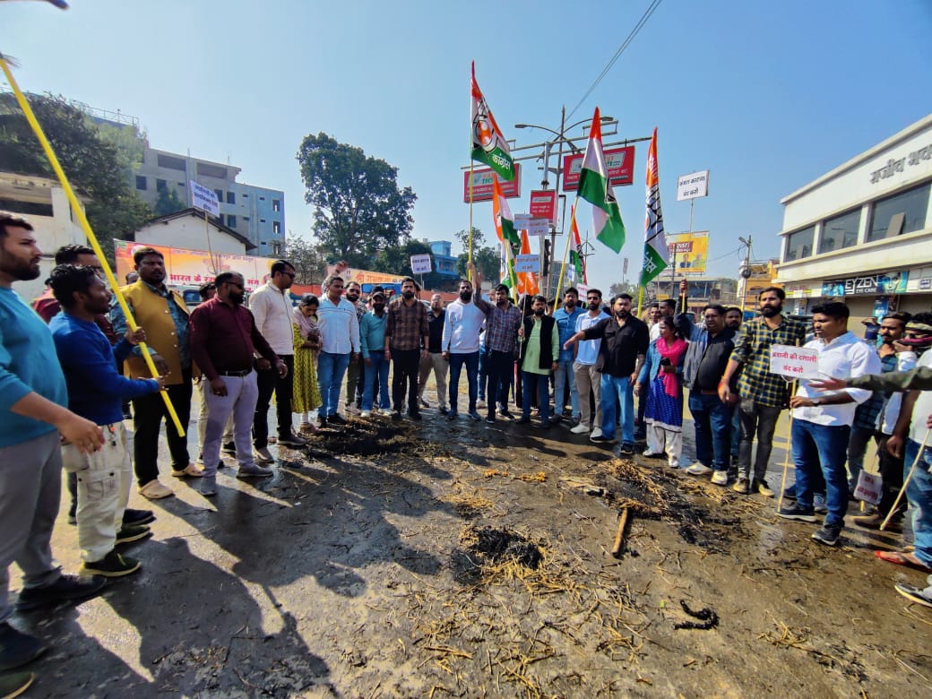 इस दौरान शहर जिला कांग्रेस अध्यक्ष सुशील मौर्य ने कहा देश में कांग्रेस ने जो बनाया उसको केंद्र की मोदी सरकार सिर्फ बेचने का कार्य कर रही है लगातार आदिवासियों के जल जंगल जमीन को बेचने का कार्य मोदी सरकार कर रही है।कभी छत्तीसगढ़ की जमीन, कभी बिहार, कभी मुंबई कुल मिलाकर मोदी जी के मित्र अदानी जिस जंगल पर बोली लगाते हैं वो जमीन उनको दे दी जाती है देश के जनहित मुद्दों को छोड़कर भाजपा सरकार ईडी और संवैधानिक संस्थाओं का दुरुपयोग कर विपक्ष की आवाज दबाना चाहती है।स्वर्गीय जवाहरलाल नेहरू द्वारा स्थापित किए गए भिलाई इस्पात संयंत्र को किसी भी कीमत पर बिकने नहीं देंगे। आज युवा कांग्रेस शहर ग्रामीण के संयुक्त तत्वावधान भिलाई नगर विधायक देवेंद्र यादव के सत्याग्रह के समर्थन और केंद्र सरकार के फैसले के विरोध में सभी जिला और विधानसभा मुख्यालयों में नरेंद्र मोदी का पुतला दहन किया गया है। बस्तर जिला युवा कांग्रेस शहर अध्यक्ष निकेत राज झा ने कहा कि जिस प्रकार केंद्र की नरेंद्र मोदी सरकार द्वारा धीरे-धीरे सरकारी उपक्रमों को निजी हाथों में सौपने के क्रम में भिलाई के स्कूल और मैत्री बाग को निजी हाथों में देने ने के लिए निविदा जारी हो चुकी है। उसके बाद ये तानाशाही सरकार कोरबा, बचेली, बस्तर और छत्तीसगढ़ की अन्य संपदा को बेच देगी। छत्तीसगढ़ के संसाधन व स्वर्गीय पंडित जवाहरलाल नेहरू द्वारा बसाये भिलाई को बचाने के चल रहे सत्याग्रह के समर्थन और केंद्र सरकार के फैसले की विरोध में आज संभाग मुख्यालय जगदलपुर में हमने राजीव भवन के समक्ष भाजपा सरकार का पुतला दहन किया किया है।अभिषेक डेविड ने कहा कि मोदी सरकार नेहरू जी के बसाए सपनों के शहर भिलाई को बेच रही है, जिसका युवा कांग्रेस का एक एक कार्यकर्ता पुरजोर विरोध करता है और आगे भी करता रहेगा। प्रधानमंत्री मोदी सिर्फ अपने उद्योगपति मित्रों के हाथों देश के संसाधनों को बेच रहे हैं। बस्तर सहित छत्तीसगढ़ के जंगलों को भी केंद्र सरकार जो बेचने का कार्य कर रही है वो कतई बर्दाश्त नहीं होगा। युवा कांग्रेस इसका पुरजोर विरोध करती है और आगामी दिनों में यह बंद नहीं होता है तो युवा कांग्रेस और भी उग्र प्रदर्शन करने बाध्य होगी। इस दौरान वरिष्ठ कांग्रेसी हनुमान द्विवेदी, अंगद त्रिपाठी, रविशंकर तिवारी, वीरेंद्र परिहार, विजेंद्र ठाकुर, जाहिद हुसैन, महामंत्री अल्ताफ उल्ला खान, मनोज साहनी, प्रदेश महासचिव तुलाराम कश्यप, प्रदेश सचिव सूरज कश्यप, विक्रांत सिंह, भंवर मौर्य, राजेंद्र पटवा, सोशल मीडिया प्रभारी अनुराग महतो, पार्षद सूर्यापानी, शुभम यदु, शादाब अहमद, शहर जिला कांग्रेस मीडिया प्रभारी शेख सद्दाम रज़ा, आकिब रजा, उस्मान रजा, एस नीला, मनिता राऊत, रजत जोशी, मोहसिन खान,