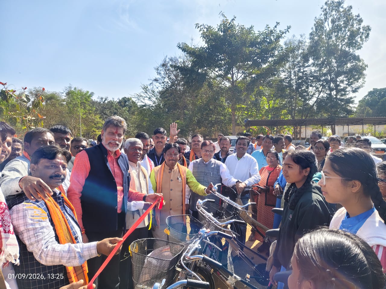 भाजपा प्रदेश अध्यक्ष एवं विधायक किरण देव और सांसद महेश कश्यप ने छात्राओं को किया साइकिल वितरण
