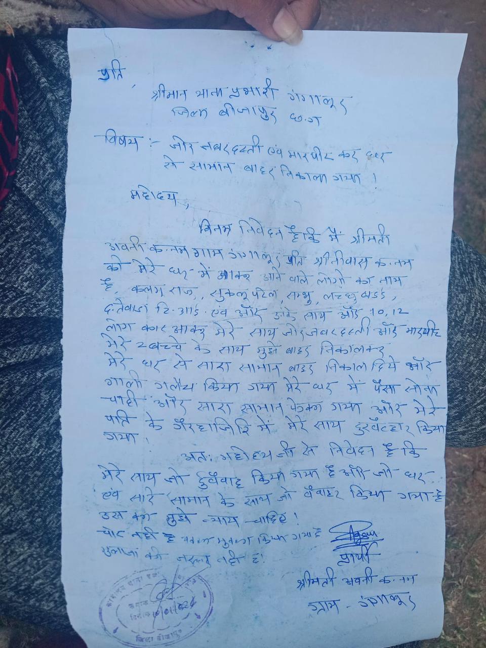 बीजापुर के कांग्रेस विधायक विक्रम शाह मंडावी ने कहा कि भाजपा नेता व पूर्व सरपंच कमलू राजू ने सत्ता की धौंस दिखाकर अपने करीबियों के साथ महिला के मकान से जबरन सामान खाली कराया और बाहर डाल दिया। विधायक श्री मंडावी ने आरोप लगाया है कि भाजपा नेता व पूर्व सरपंच कलमू राजू अपने साथियों के साथ महिला के मकान पहुंचे और जबरन घर का सामान बाहर निकाल दिया। महिला को घर में बंद कर बाहर से ताला जड़ दिया गया। विधायक ने प्रशासन पर हमला बोला और कहा कि जिले के अधिकारी तमाशबीन बने बैठे हैं। इसलिए भाजपा नेता खुलेआम दादागिरी कर रहे हैं। ये लोग आम जनता को कुचलने पर तुले हैं। कुछ दिन पहले ही भोपालपट्टनम के भाजपा नेता बिलाल खान ने दो आदिवासी युवकों को जबरन सत्ता का धौंस दिखाकर जेल भिजवा दिया था। पीड़ित महिला ने विधायक से फोन पर बात कर न्याय की मांग की है। जानकारी अनुसार महिला ने पुलिस थाने में भी आवेदन देकर कार्रवाई की मांग की है।
