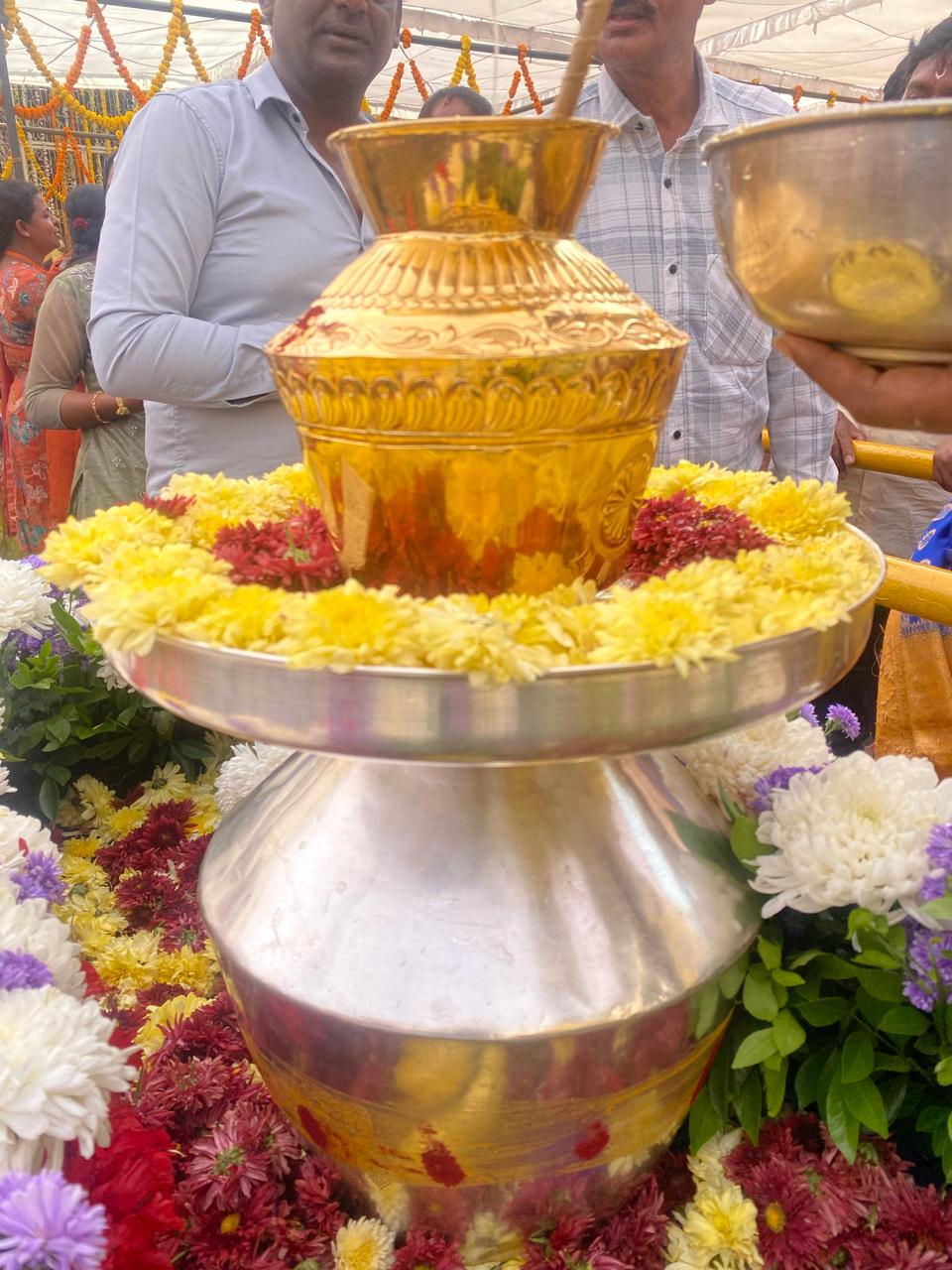 जगदलपुर। बालाजी मंदिर जगदलपुर के रजत जयंती महोत्सव के तहत सुबह नित्य आराधना और विशेष हवन के साथ तीसरे दिन के पूजा विधान शुरू हुए। आंध्र प्रदेश से पधारे पंडितों के सानिध्य में भक्तों की ओर से प्रदत्त स्वर्ण कलश वैदिक मंत्रोच्चार के बीच मंदिर को समर्पित किया गया। इस विशेष रस्म में दानदाताओं सहित बड़ी संख्या में भक्तगण शामिल हुए। इस दौरान भक्तों के हाथों से समर्पित शहद स्वर्ण कलश में पंडितों के सानिध्य में संग्रहित किया गया। इसी शहद से गुरूवार सुबह श्री बालाजी मंदिर में भगवान बालाजी, माता आंडाल एवं माता पद्मावती का महाअभिषेक किया गया। इस पावन अवसर पर हज़ारों की संख्या में नगर के श्रद्घालु जुटे।