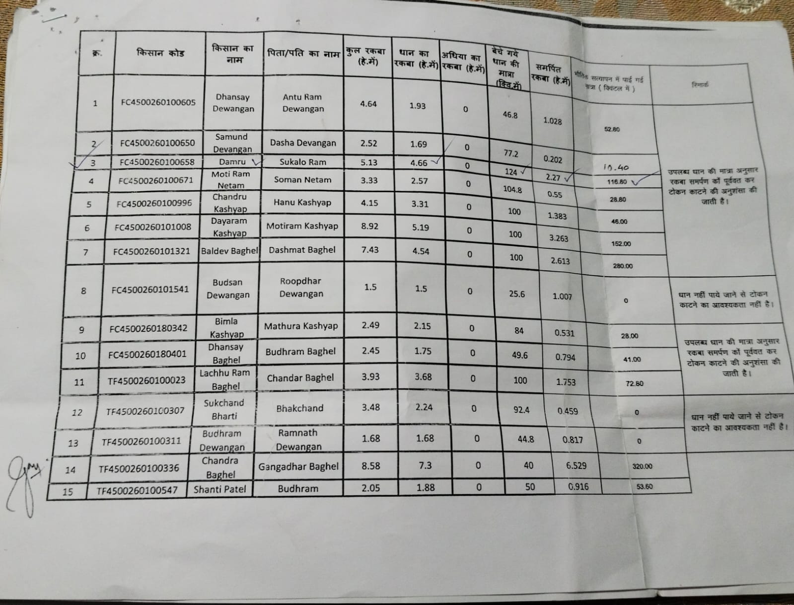 बकावंड। धान खरीदी में पटवारी की गलती या कहें मनमानी का खामियाजा किसानों को भुगतना पड़ रहा है। रिकॉर्ड में गलत अंकन की वजह से कई किसान अपना पूरा धान नहीं बेच पाए हैं,किसानों की सहमति के बिना रकबा जांच किए गलत प्रवीष्टि की गई है।