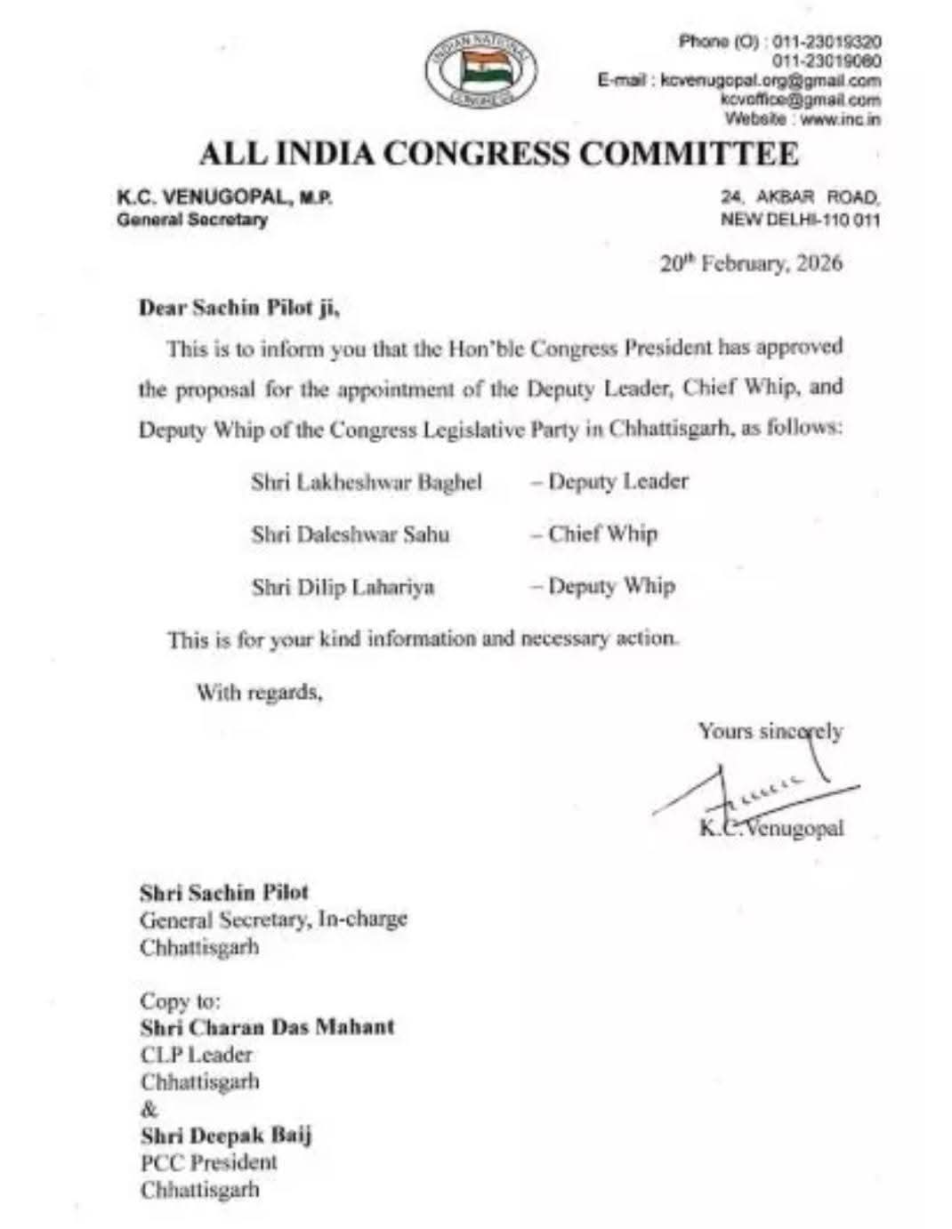 0 कांग्रेस विधायक दल के उपनेता प्रतिपक्ष नियुक्त