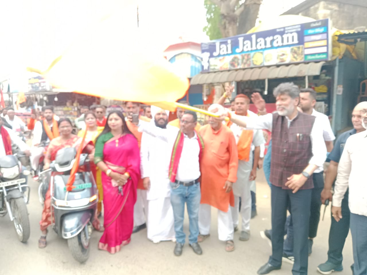 जगदलपुर। श्रीराम जन्मोत्सव के अवसर पर आज विश्व हिंदू परिषद और श्रीराम जन्मोत्सव समिति द्वारा बाईक रैली का आयोजन किया गया। रैली का शुभारंभ जगदलपुर के लोकप्रिय स्थानीय विधायक और प्रदेश अध्यक्ष किरण सिंह देव ने भगवा ध्वज लहराते हुए किया। बाईक रैली शहर के प्रमुख चौक-चौराहों से होते हुए मां दंतेश्वरी मंदिर प्रांगड़ तक पहुंची। मार्ग में रैली दंतेश्वरी मंदिर, मितली चौक, संजय मार्केट, अग्रसेन चौक, पीजी कॉलेज, गीदम रोड, कलेक्ट्रेट और कोतवाली से होकर गुजरी। रैली में विधायक किरण सिंह देव भी बाइक पर सवार होकर लोगों का अभिवादन स्वीकार करते हुए नजर आए।