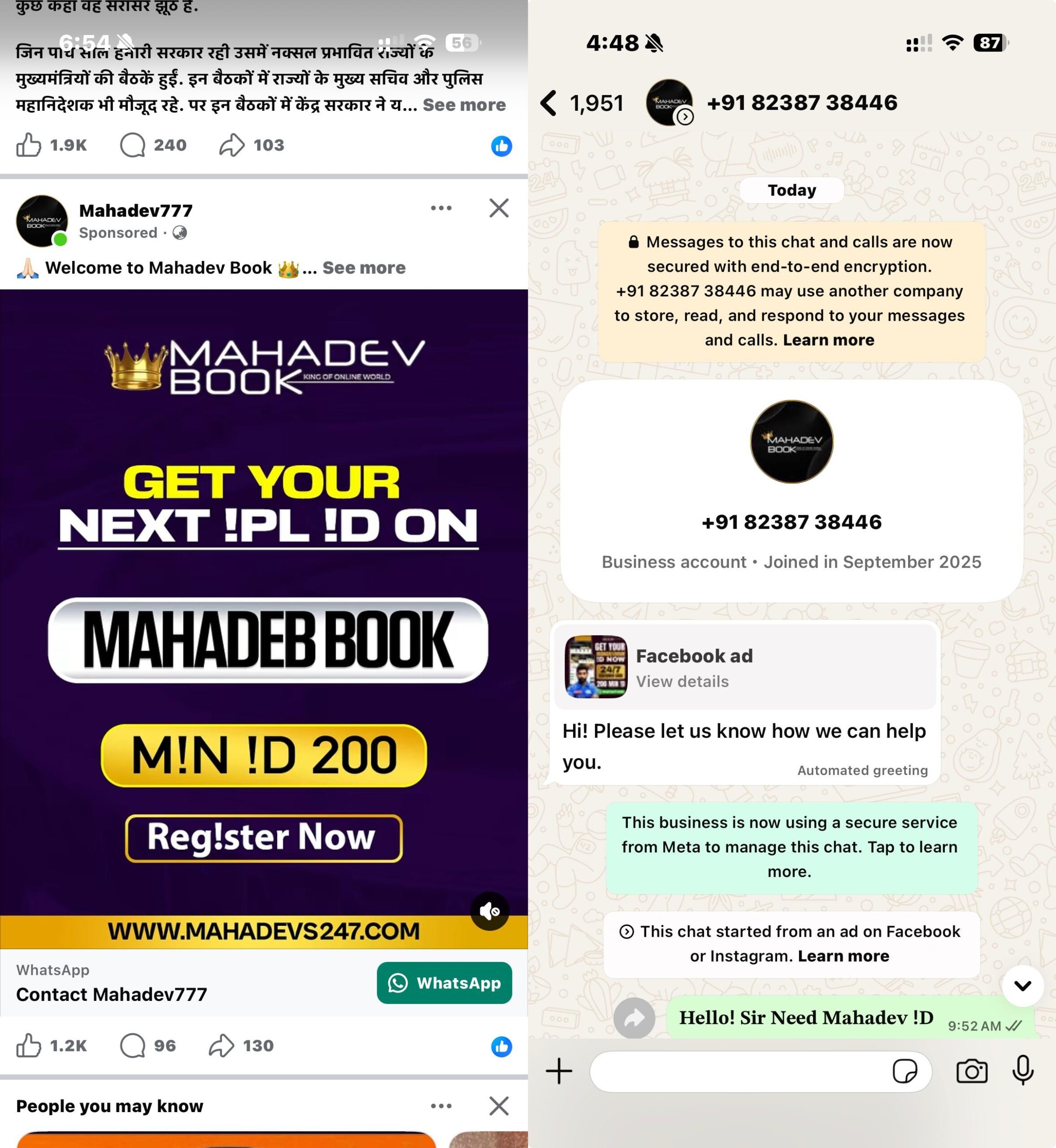 0 आज भी फेसबुक, इंस्ट्रग्राम में महादेव सट्टा एप का विज्ञापन चल रहा