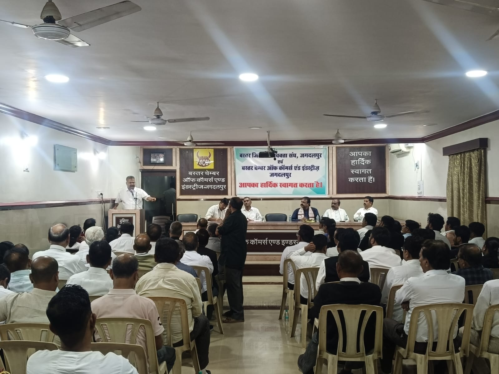 चेंबर सभागार जगदलपुर में आयोजित महत्वपूर्ण बैठक में बस्तर संभाग के संघ, संगठनों, जनप्रतिनिधियों ने अपनी सहभागिता निभाते हुए एक स्वर में कहा कि बस्तर में छत्तीसगढ़ उच्च न्यायालय बिलासपुर की खंडपीठ खोलने का पूर्ण समर्थन करते हैं। इस हेतु जो भी आंदोलन होगा उसमें हम सभी की सहभागिता होगी।बस्तर जिला अधिवक्ता संघ जगदलपुर एवं बस्तर चेंबर ऑफ कॉमर्स एंड इंडस्ट्री जगदलपुर के संयुक्त तत्वावधान में आयोजित इस बैठक में बस्तर में खंडपीठ खोलने के आंदोलन की रूपरेखा तैयार की गई, जिसमें सभी संगठन, संघों एवं समाजों और राजनैतिक दलों ने भाग लिया इस बैठक को पूर्व विधायक रेखचंद जैन, राजाराम तौडेम,शहर कांग्रेस अध्यक्ष शुशील मौर्य, सर्व आदिवासी समाज के दशरथ कश्यप, बस्तर जिला पत्रकार संघ के अध्यक्ष मनीष गुप्ता चेंबर के पूर्व अध्यक्ष किशोर पारख, मनीष शर्मा वरिष्ठ अधिवक्ता एवं जिला अधिवक्ता संघ के पूर्व अध्यक्ष संतोष मिश्रा, आनंद मोहन मिश्रा, वरिष्ठ अधिवक्ता अशफाक अहमद खान, वरिष्ठ अधिवक्ता एवं जिला अधिवक्ता संघ के वरिष्ठ उपाध्यक्ष अवधेश कुमार झा, सिंधी समाज के अध्यक्ष मनीष मूलचंदानी, आंध्रा समाज के अध्यक्ष जयंत नायडू, क्रिश्चियन समाज से रत्नेश बेंजामिन रोटरी क्लब से नवीन भावसार एवं अन्य वक्ताओं ने संबोधित किया। स्वागत भाषण जिला अधिवक्ता संघ के अध्यक्ष विक्रमादित्य झा ने दिया एवं आभार प्रदर्शन बस्तर चेंबर आफ कामर्स के अध्यक्ष श्याम सोमानी ने किया। मंच संचालन चेंबर महामंत्री विमल बोथरा ने किया। इस अवसर पर बड़ी संख्या में अधिवक्ता एवं व्यापारी तथा समाज संगठन के लोग मौजूद रहे।